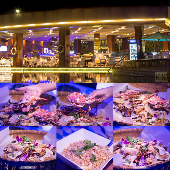 海蓝海底餐厅是世界上第十家海底餐厅。整个餐厅由连接屋顶的巨幅玻璃幕墙组成餐厅墙壁。每晚7点30分,专业潜水员将潜入巨型鱼缸,表演喂鱼秀。它家自助餐不限量供应的烤生蚝、烤大虾、烤牛排等精致又好吃!