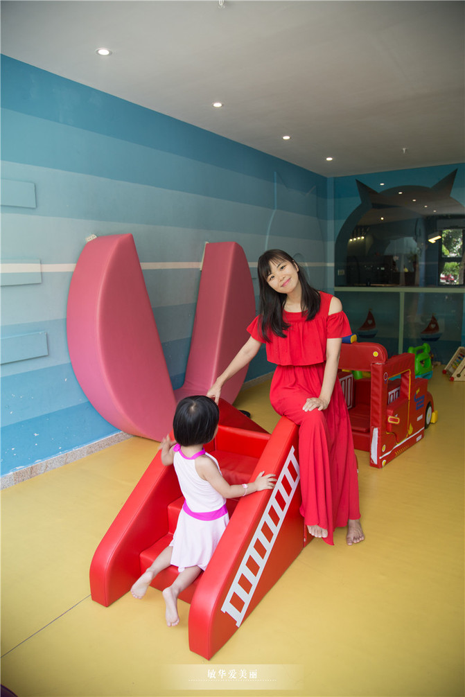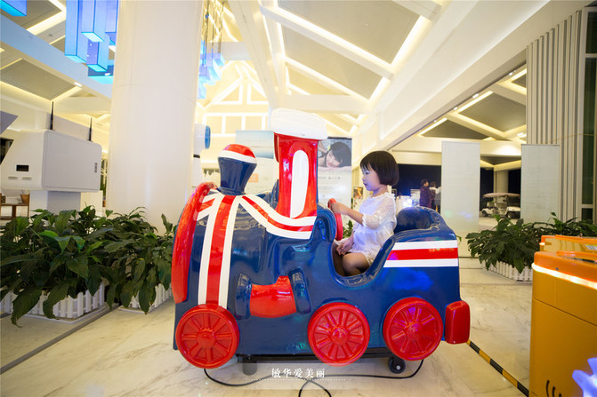 大堂的角落处还有一片适合小盆友玩的小小机动游戏世界,我家女汉纸还算懂事,只求在上面蹭着坐一会,没让我们掏钱让她去玩,这样的美德求一直保持下去吧……