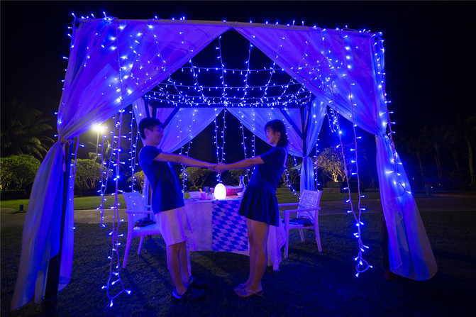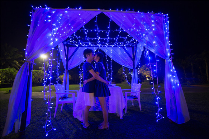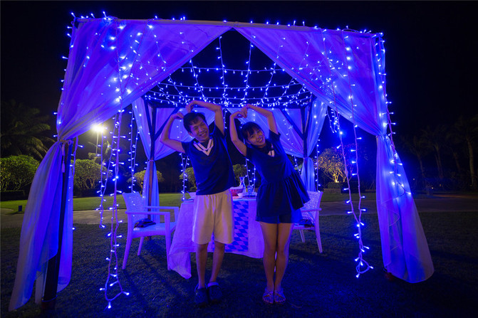 夜色下,亚龙湾迎宾馆大堂灯光效果美得炫目啊~~