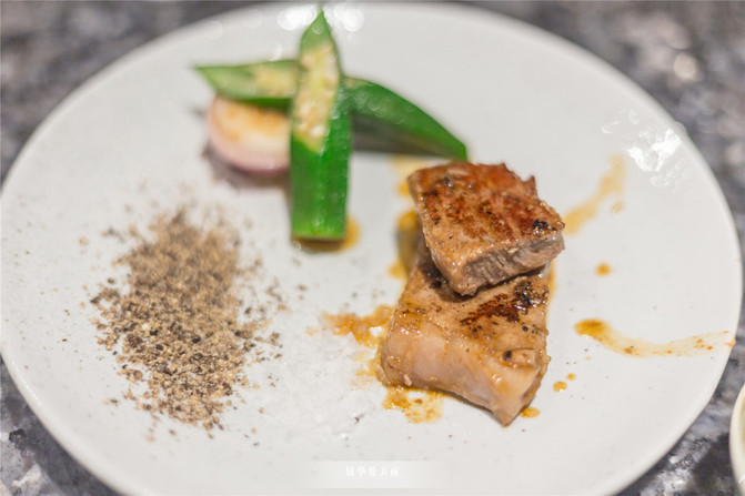 晚餐正式开始了,首先上桌的是刺身拼盘。虽然明知道吞拿鱼才是刺身界的No.1,但我还是对三文鱼比较情有独钟。肉质饱满、泛射着诱人的光茫的三文鱼刺身用筷子夹起细细品味,完美地感受到鱼肉的鲜甜和层次感,三文鱼独有的油脂香味使人迷醉。