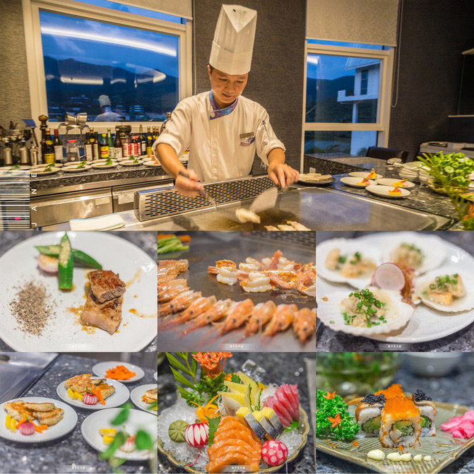 品尝过亚龙湾迎宾馆的海蓝海底主题餐厅后,懒得掉渣的吃货夫妻一家三口继续将离开三亚的最后晚餐交给同样是迎宾馆出品的焰遇日式铁板烧。