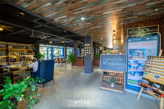 民宿的大堂直击文艺青年的红心,适合聊天、适合开party、适合打桌球。