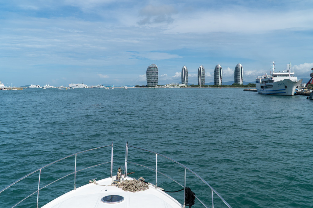 三亚风景极美,只有真正驶出大海,才能饱览全貌。岛上树木葱茏,悠悠天空,朵朵白云,青翠欲滴地绿植,金黄的阳光沙滩。渐渐远离,在近海体验一番,人生顿时到达了高潮。想着一众美女就在身后,自己仿佛拥有了国王一样的权力。奢华之感,令人难忘。