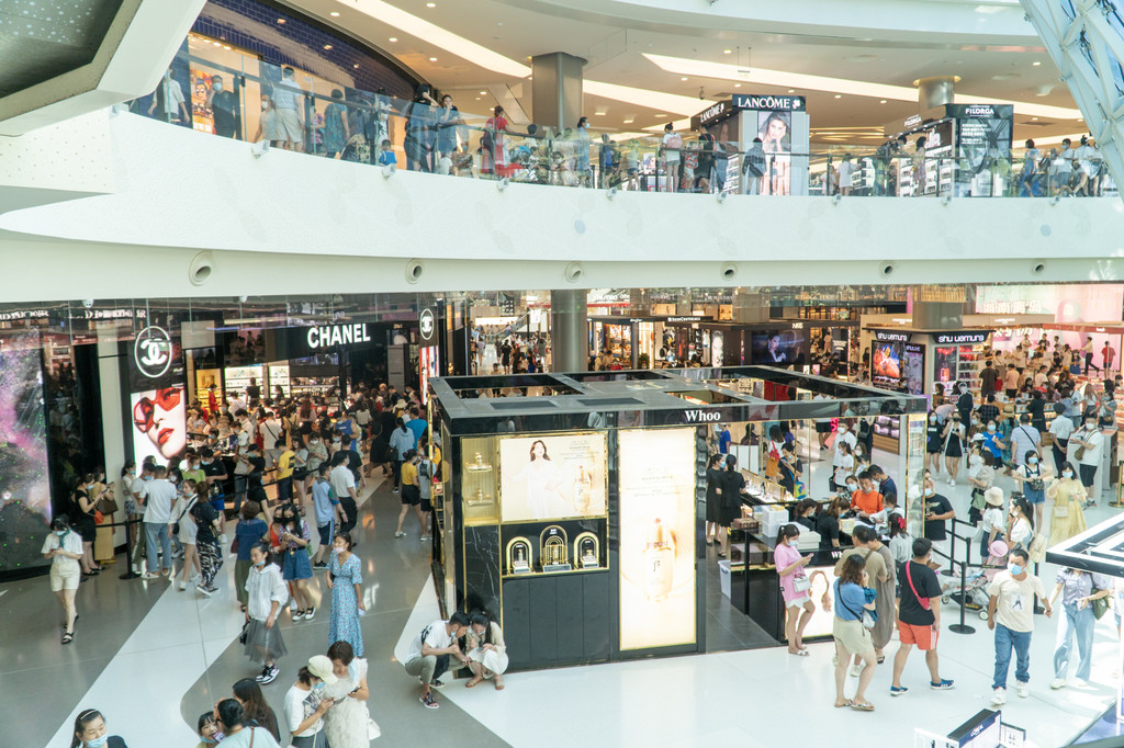 商场内人声鼎沸,来自全世界的客人都有。大家边走边看,休闲,购物,饮食都集中在了一体。在细细看看品牌,中文,英文,韩文,日文等标识明显。世界一流的品牌入驻其中,漂亮窈窕的导购小姐为您服务。且不说别的,单是走在其中,就能体会到社会精英的感觉。所有服务员的一颦一笑都那样灵动自然。她们笑颜如花,打扮精彩,并以最好的精气神展现着古老东方民族的魅力。这就是大国气派啊。