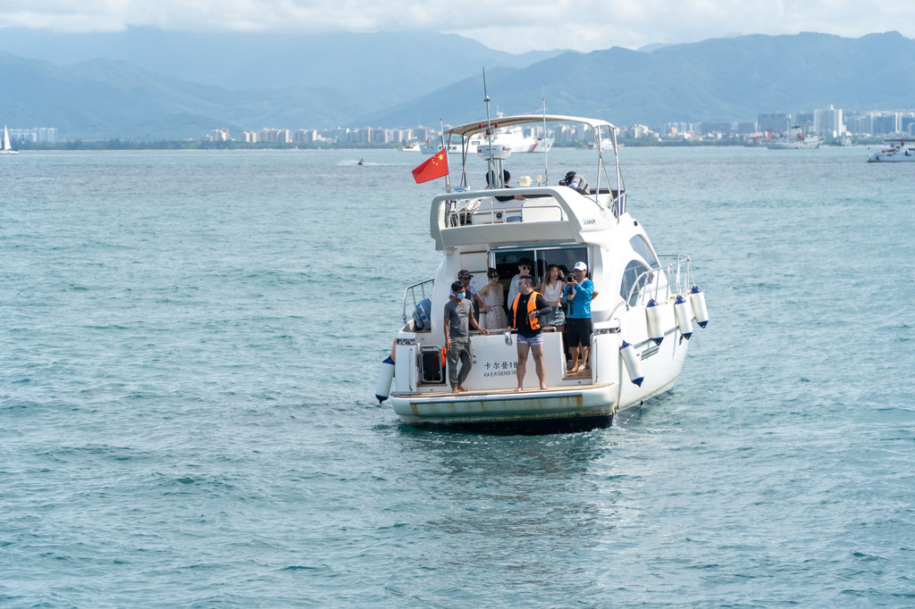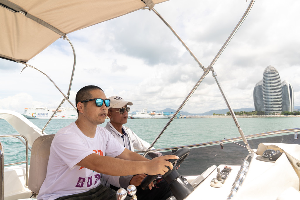 大家迫不及待的登上私人游艇。驾驶者游艇,飞快的劈波斩浪。如同极速的飞鱼一样,我们仿佛和大海融为了一体。