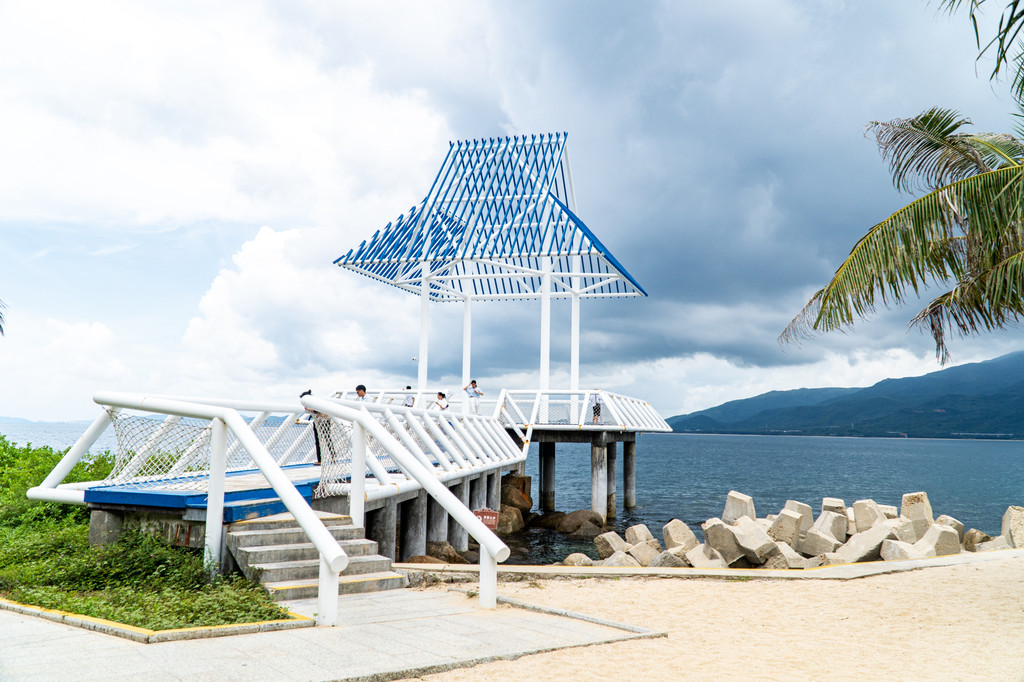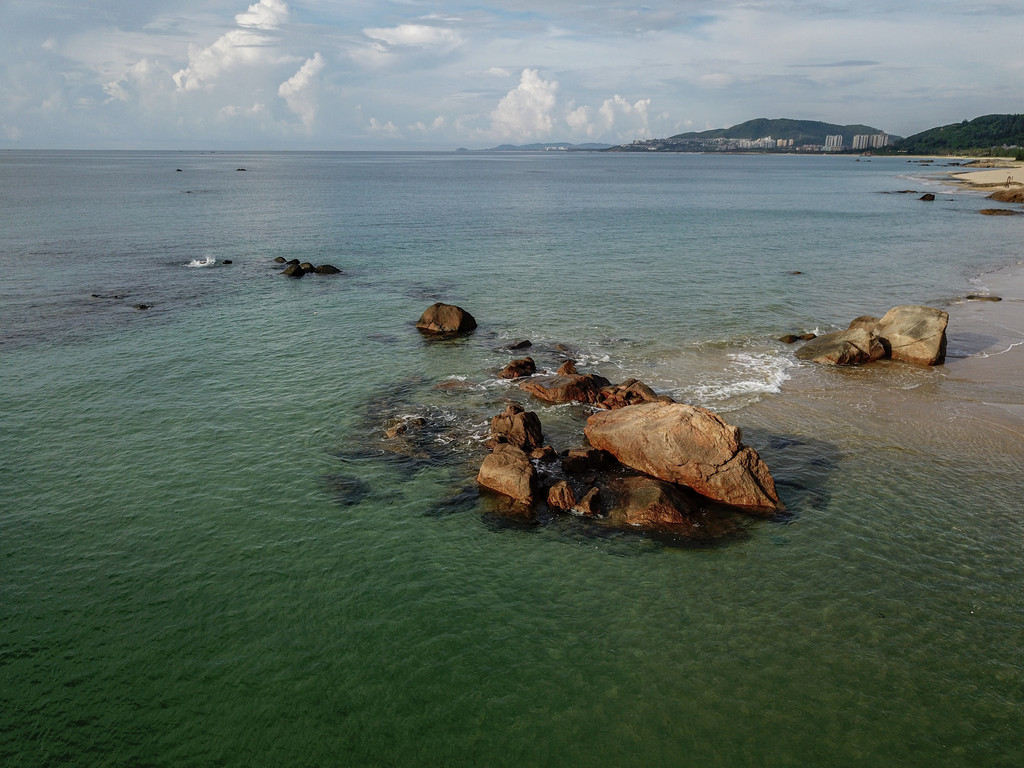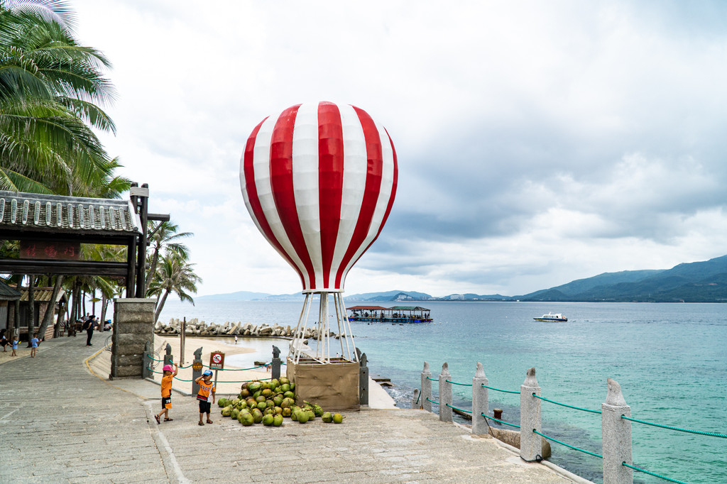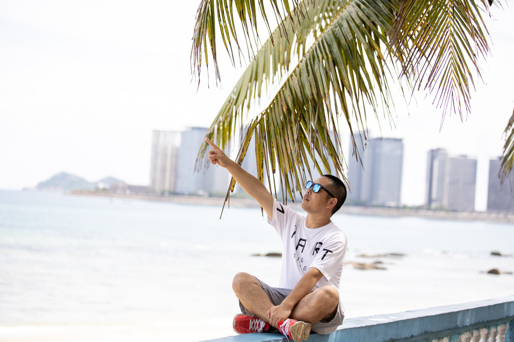 吃完午饭,餐厅前面就是万宁日月湾。日月湾拥有得天独厚的地理位置,经过融创集团的开发,这里的旅游模块非常成熟。一眼看去,碧波荡漾,棕榈傲立。沿着海湾,一条宽敞大路一字铺开。在夏日光景,却依旧有人在上面奔跑运动。游客群集,热闹非凡。