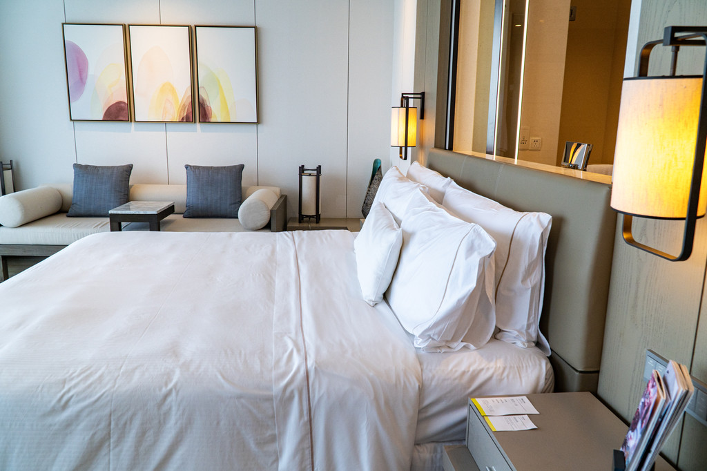 酒店服务周到,完全是一流国际水平。拿到房卡,打开房门,房间整洁,家具奢华,温馨的布置一下子吸引了我们。游玩了一整天,身体早就迫不及待地躺倒在床上了。柔软的枕头和松软的垫子一下子包裹住全身,每一个细胞都放松了下来。或许这就是真正的快乐。在无边月色之中,我们也昏昏睡去。一切都是那样安静,唯有海风在不远处呼啸而过。