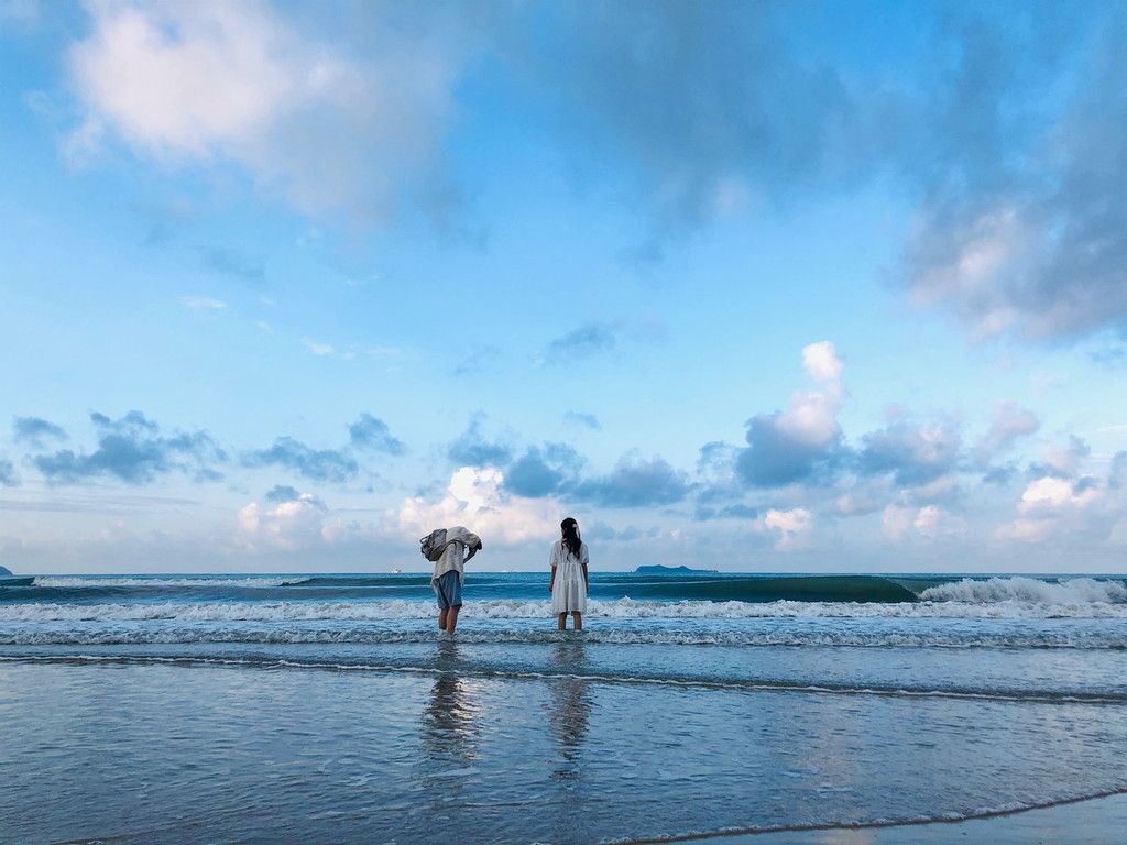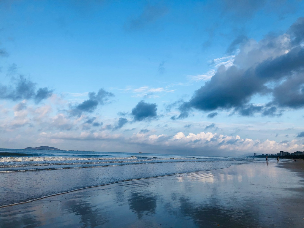 天涯海角距离机场很近,开车过来30分钟,这一天天气正好,蓝天白云都漂浮在空中。