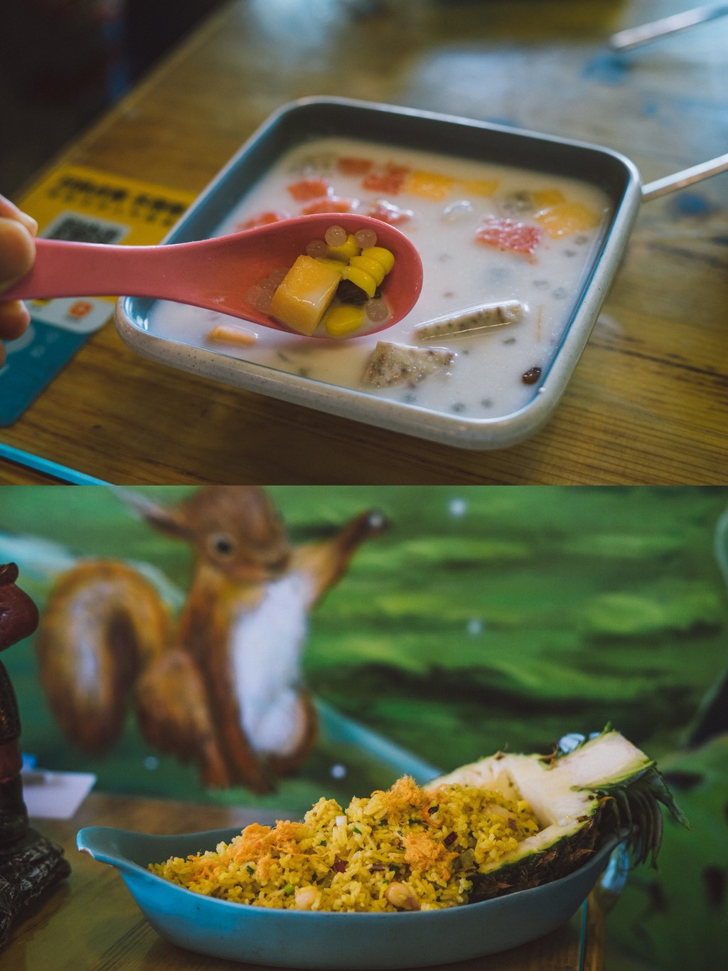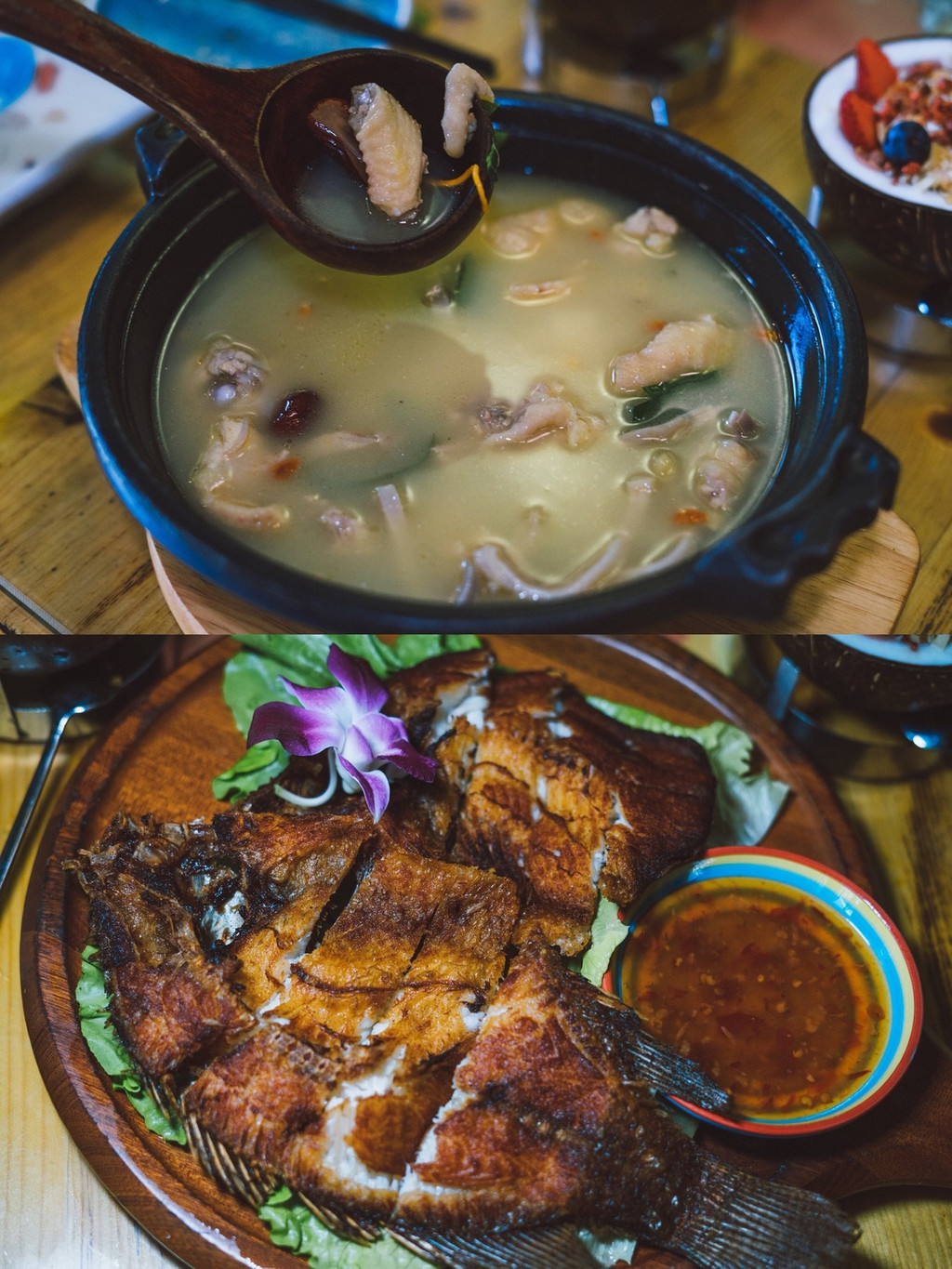 先喝汤后吃肉,下菜的顺序,小姐姐都会帮看。本来我调的蘸料不适合吃椰子鸡、小姐姐主动为我调配了他们当地的特色调料,非常nice。