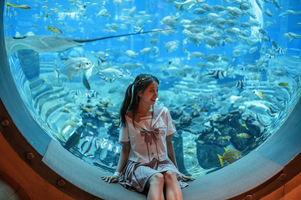 失落的水族馆,把神奇的海洋动物搬到陆地上,是《亲爱的,热爱的》网红打卡地,里面有一处圆形的玻璃墙,和小动物们一起,穿着制服拍照再美不过啦!