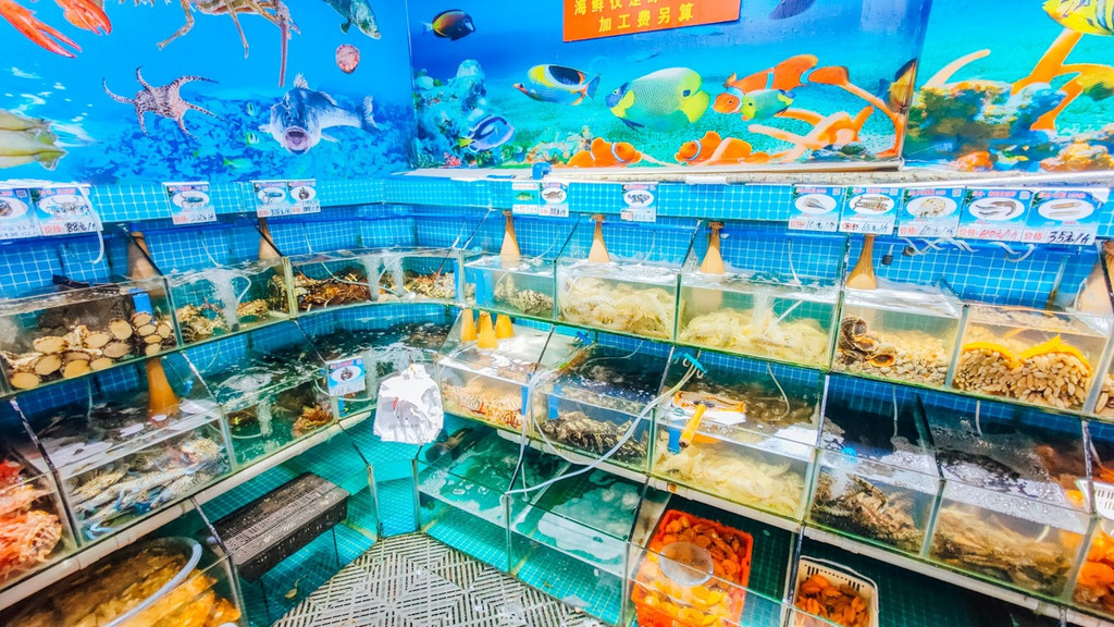 这家的海先区在里面,可以进去自己挑选,可以叫工作人员来帮忙,种类很多,挑好去水称重,不应担心吃亏