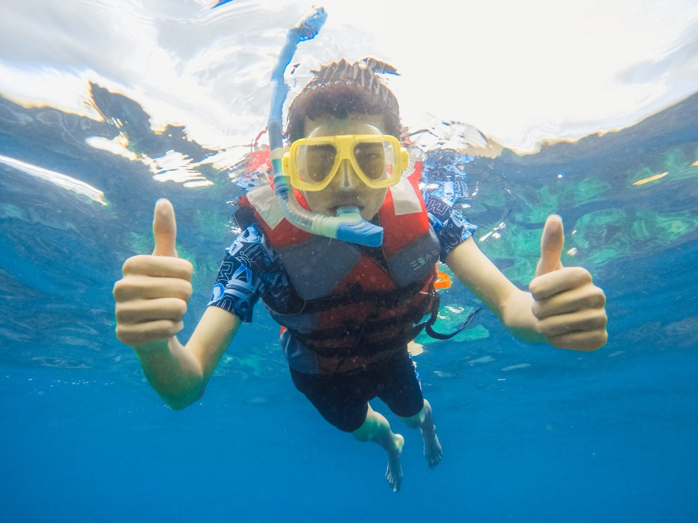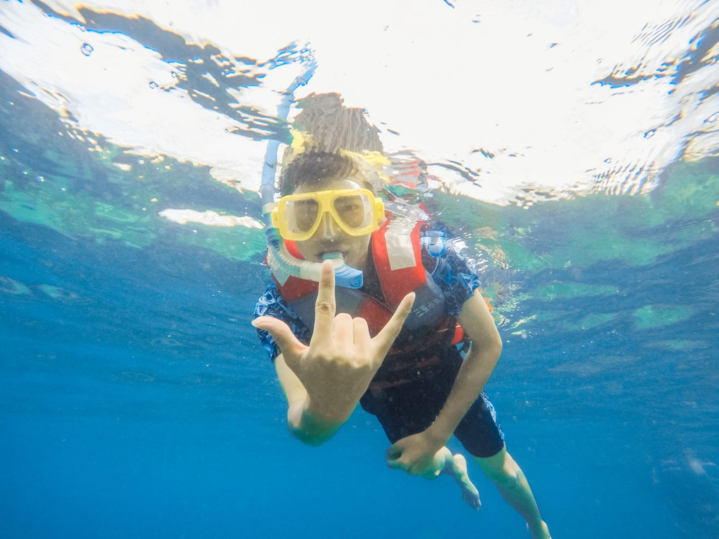我爸来最想体验的就是在真正的大海里游泳了,他们那代人小时候经常在河里游泳抓鱼,后来长大了就没下过河了,虽然酒店也有游泳池,但是爸爸觉得没意思,还是喜欢流动的水、自然的水。