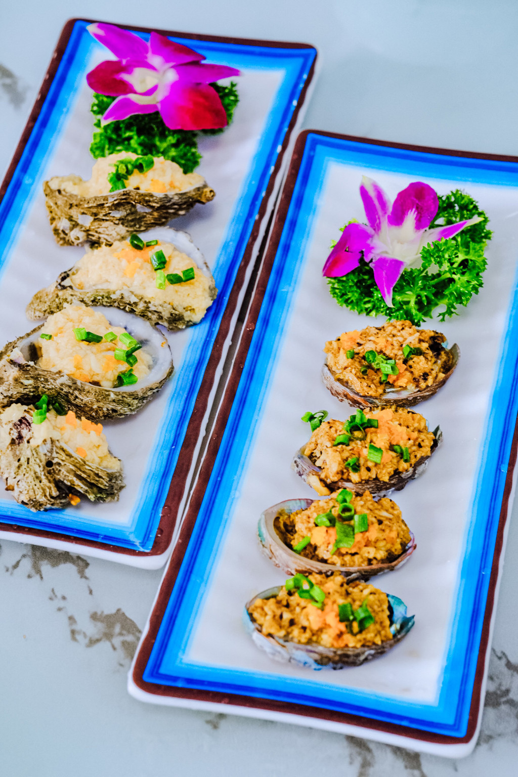 蒜蓉生蚝:肉质鲜嫩,火候掌握的很好吃,色香俱佳。