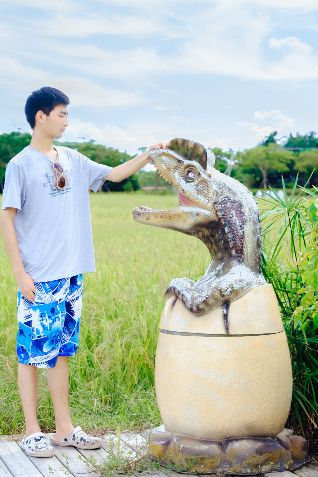 在公路上老远就可以看见的恐龙终于近距离走近了,我一直好奇为啥水稻公园里面有恐龙像,后来去查了下资料原来是 中国 古生物学会和水稻公园为了共同打造的一个大型 中国 恐龙科普教育基地,就坐落在千亩稻 田中 ,与水稻结合。