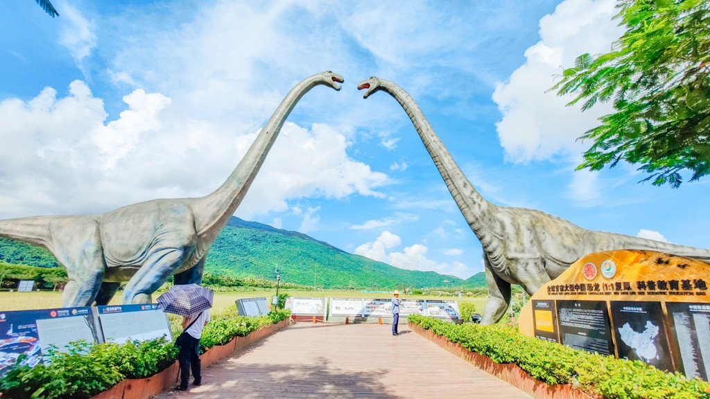 它现在拥有袁隆平水稻科研基地、南繁水稻科研基地、 中国 恐龙科普教育基地、南繁科普文化长廊、研学体验基地、美人蕉花海、马术&热气球综合体验区、百龙大道、共享农庄&采摘体验区、祈愿彩廊、聆听风语树、24节气油纸伞街、五色长廊、禾下乘凉游客中心。大家可以挑选一些感兴趣的地方去~