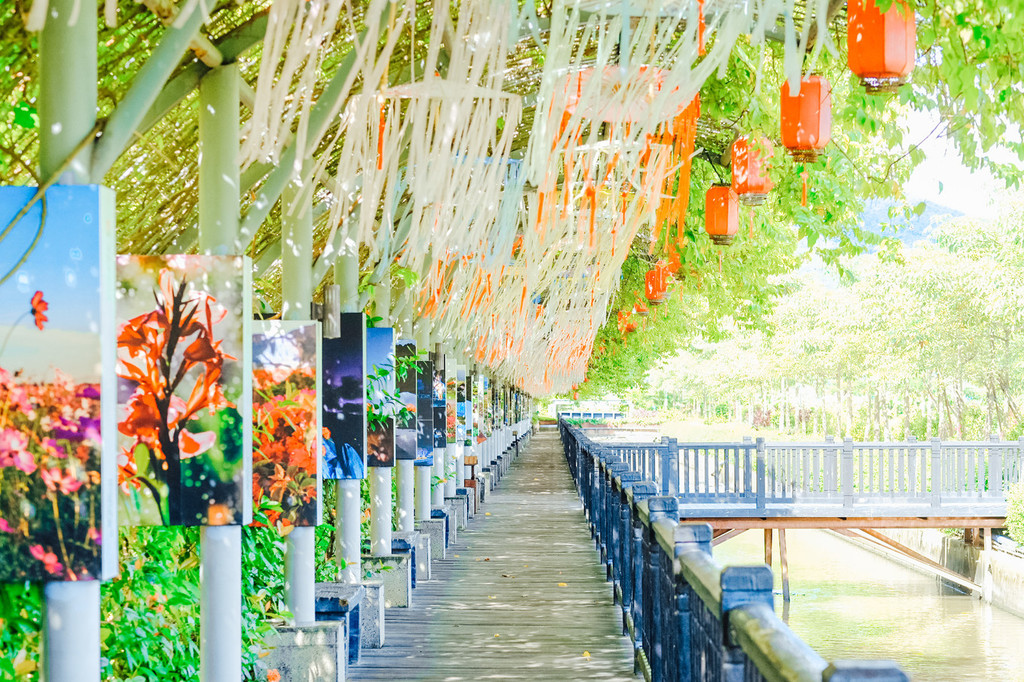进去先是具有悠久农耕历史文化的“二十四节气长廊”,旁边隔着一条小河对面就是美人蕉花海。
