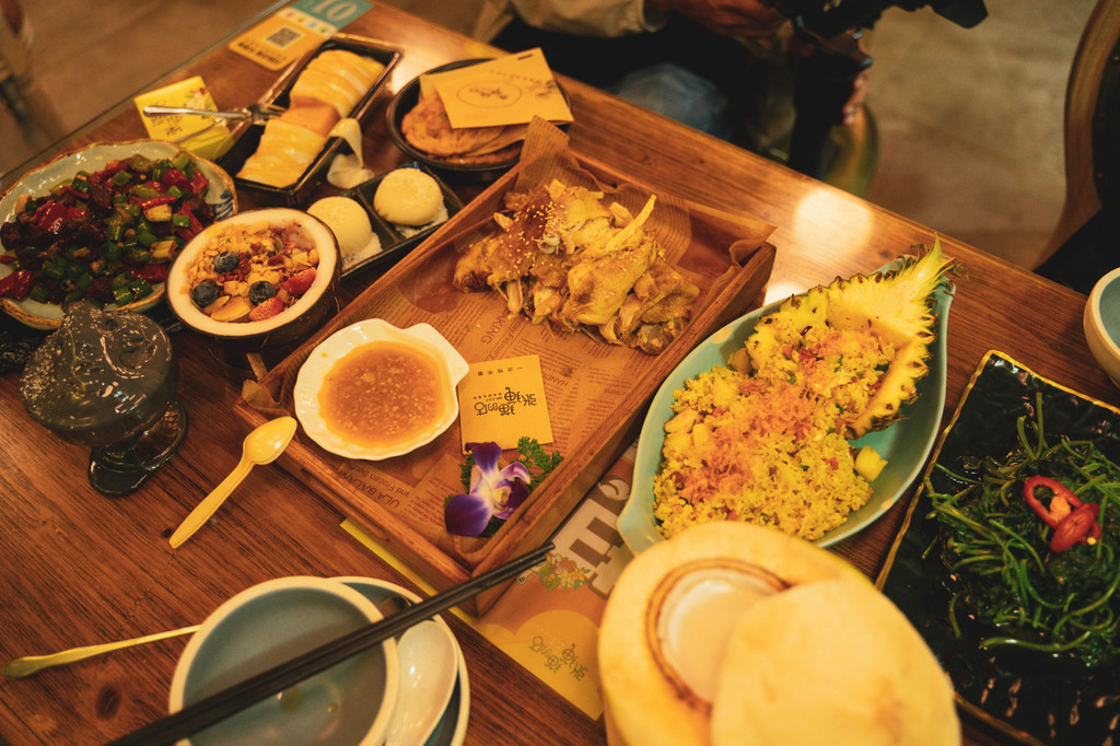 古法盐焗烹饪的 海南 名菜 文昌 鸡、高山放养的五指山小黄牛肉粒和酱爆虾饼陆续登场,菜品颜值和店面颜值旗鼓相当。除了正餐,这里的甜品也很赞, 巴西 莓椰子碗是我的最爱,像是一个精致的小蛋糕,椰香浓郁、酸甜可口,加上招牌双层椰子冻、芒果肠粉、芒果雪媚娘,解了我对水果和甜食的馋。