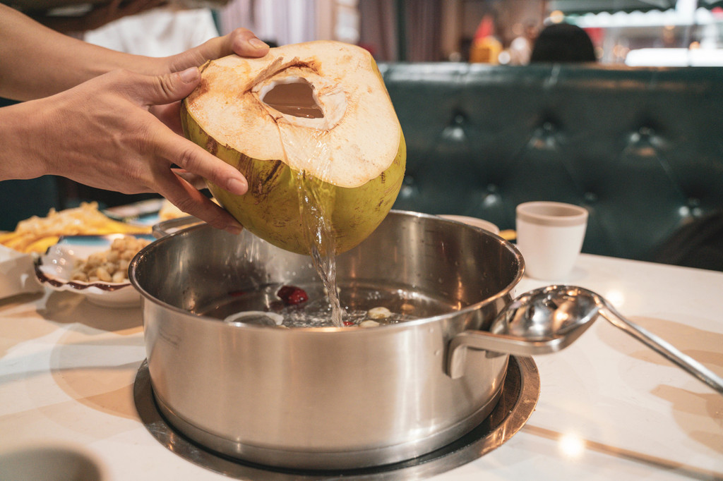 海南 的椰子与享誉 东南亚 的 文昌 鸡,在热带阳光下孕育的两大美食,汇于一锅之内,恰如春风玉露一相逢,正是人间绝配。