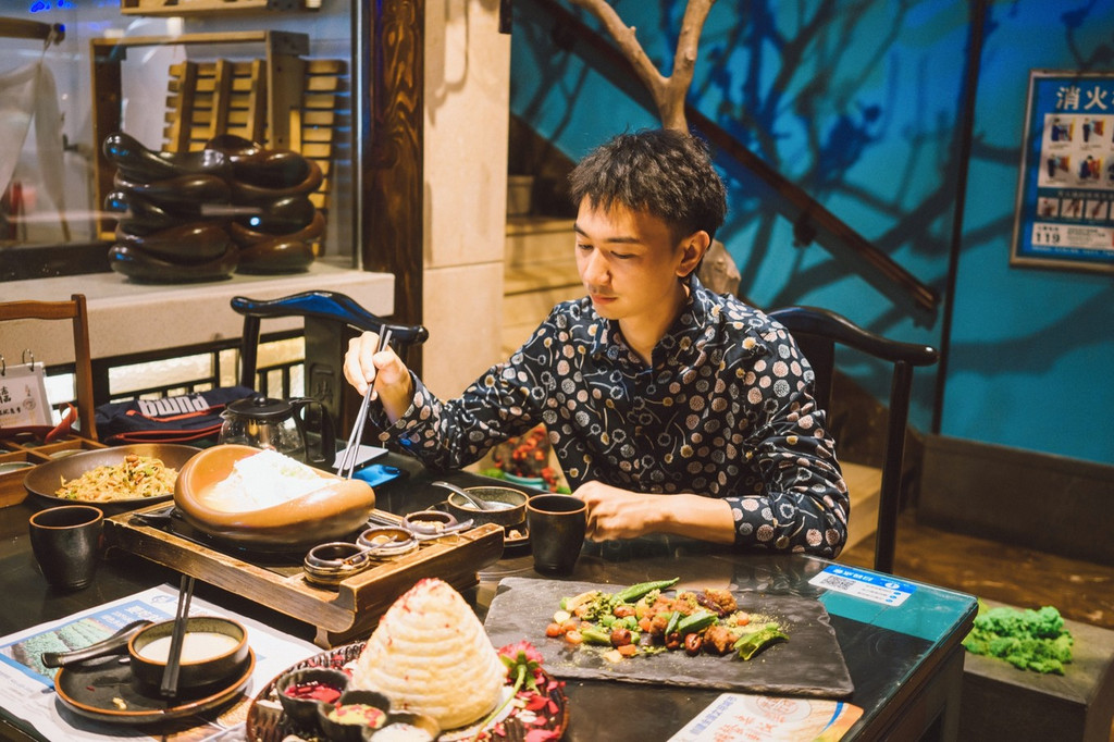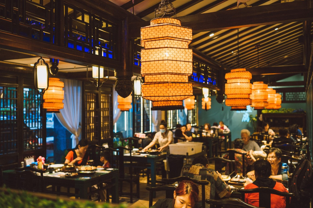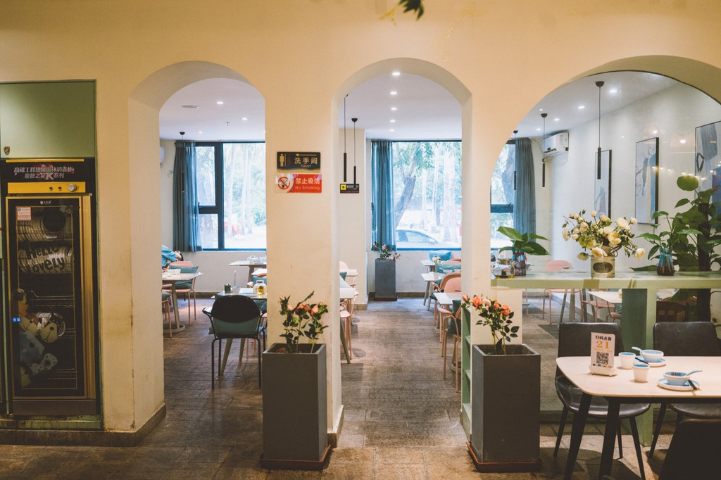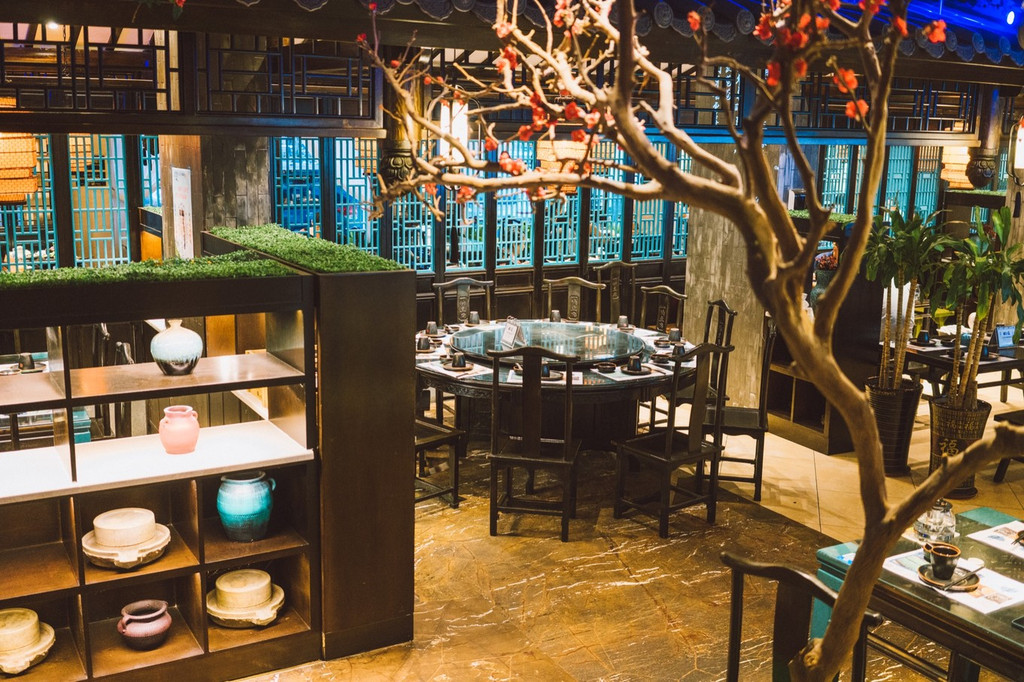 中式风格,想起了周杰伦的青花瓷,顶部是大红灯笼🏮,店员们身着汉服古色古香~就餐的环境很有空间感,小姐姐小哥哥都很热情。