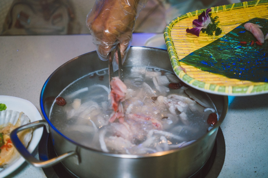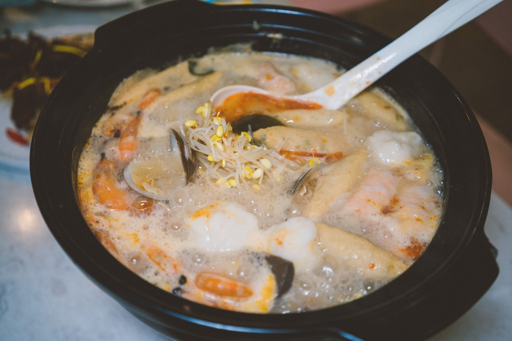 海鲜糟粕醋,海鲜锅有一点 东南亚 的味道。