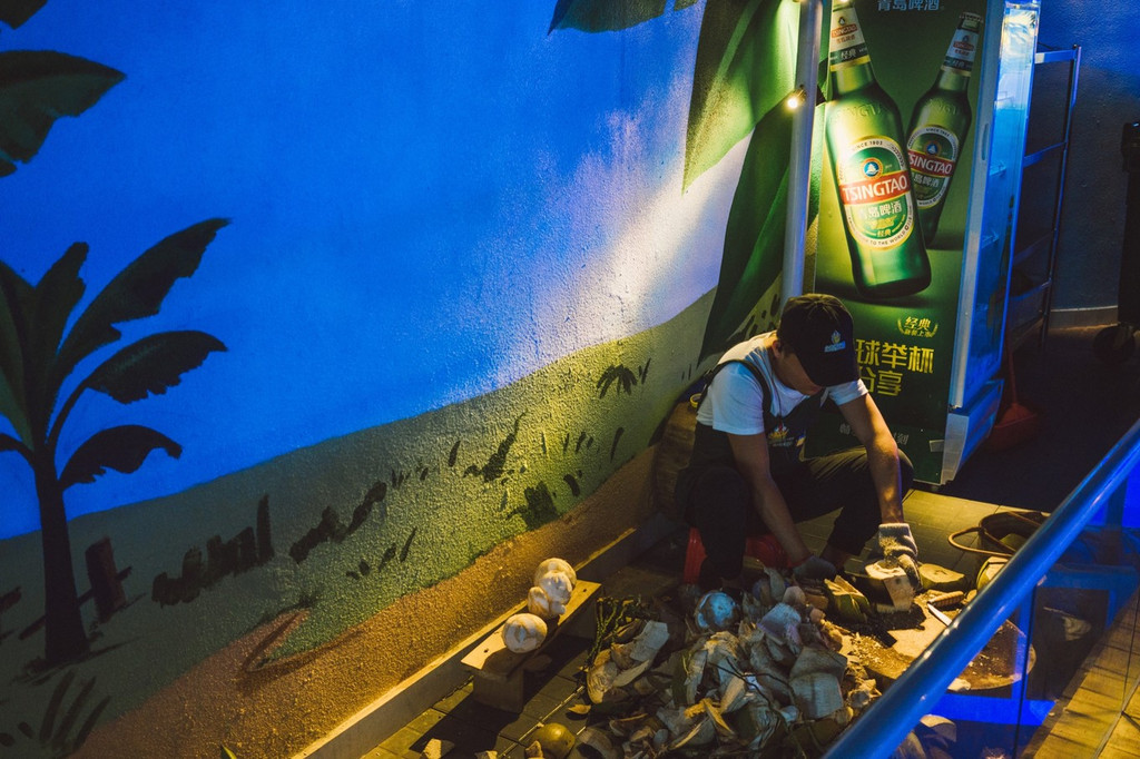 门口就有一直在砍椰子的人,为我们提供美味的椰子汁,这也是一个寂寞的职业,一个人一天不知道要砍多少个,如果遇到了这样的人,不如和他聊聊天。