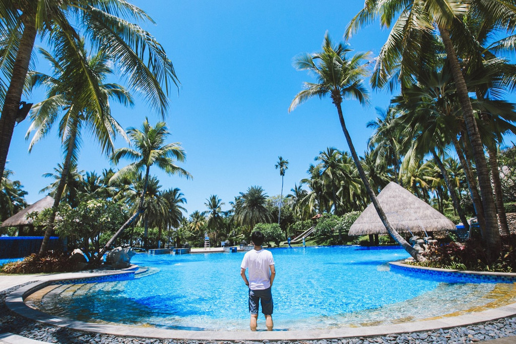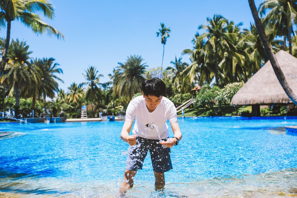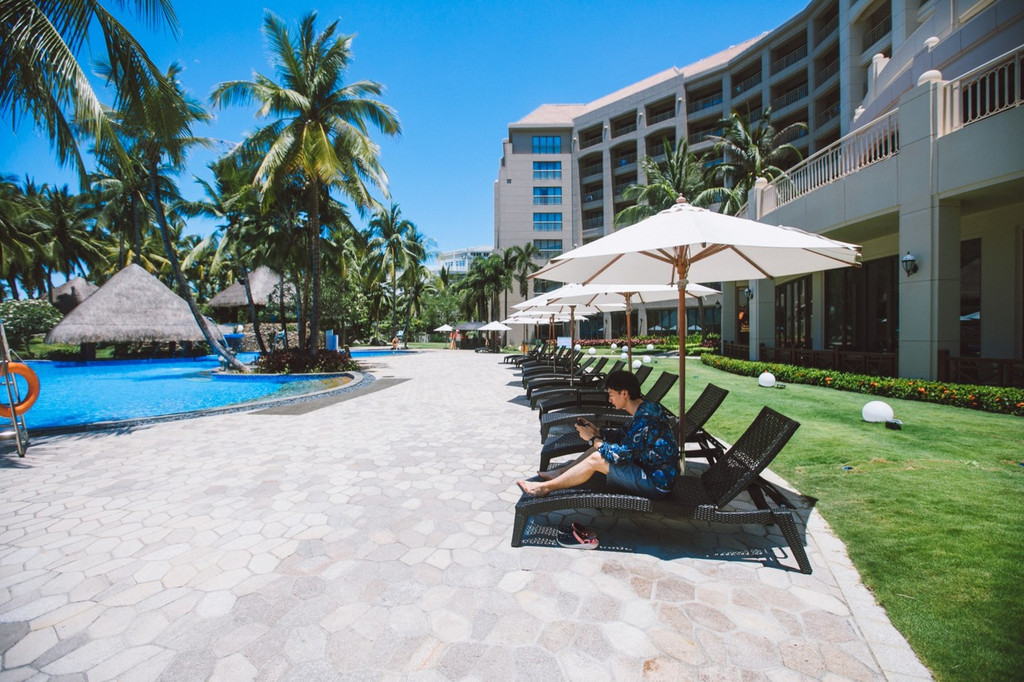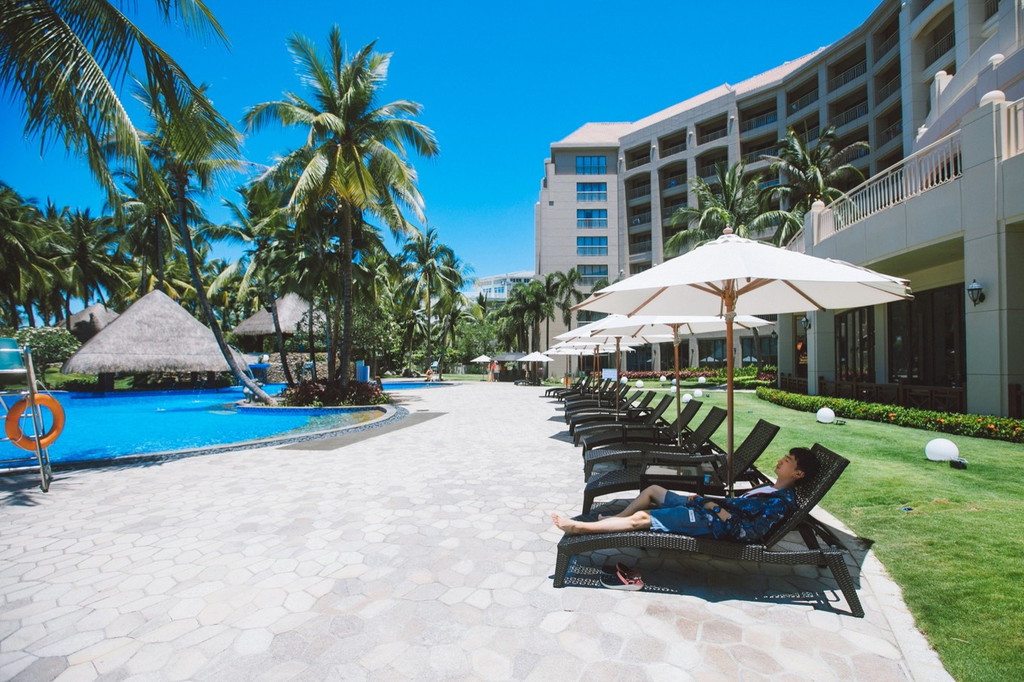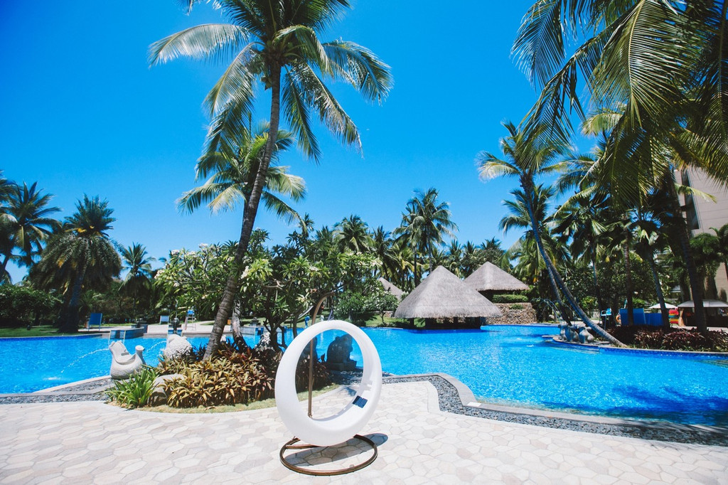 最喜欢的就是酒店里的这一份泳池,有儿童休闲区和成人区,这一次因为工作太忙,一次都没有下水,椰树林大片分布在酒店里,形成一道靓丽的风景线,躺椅游玩的旋转椅,都是不错的拍摄道具,看到这里你有什么新的拍摄灵感呢?