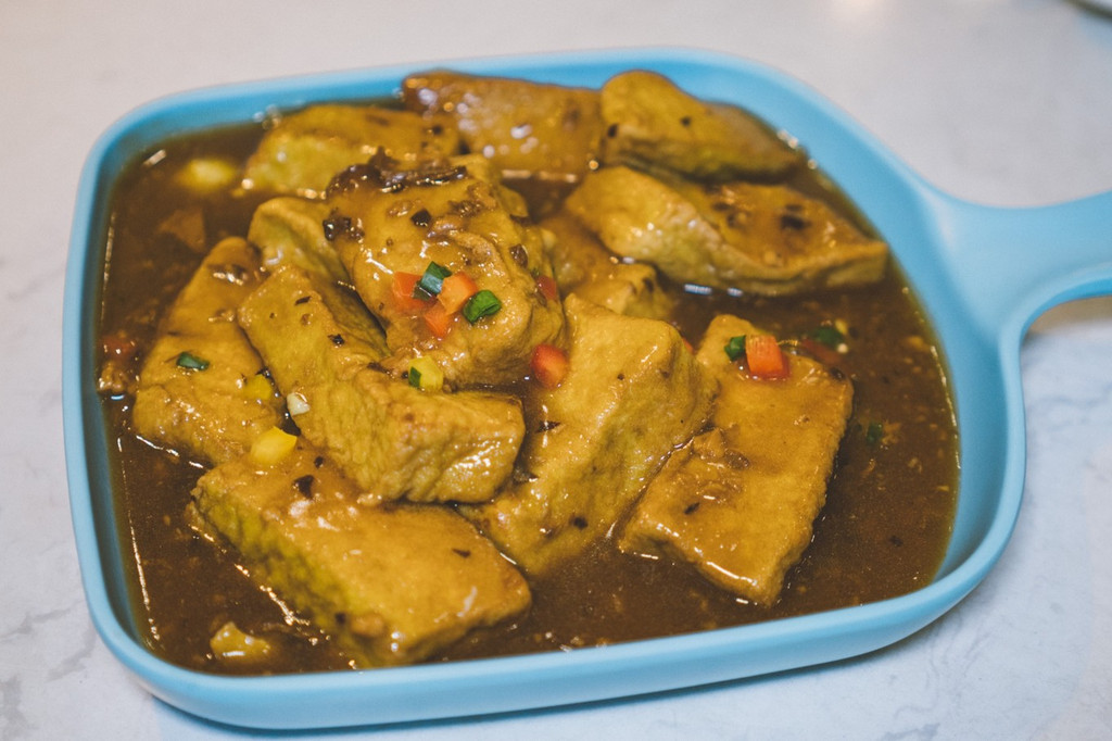 阿婆手工豆腐,精选的豆腐经过加工,每一块都入味,放入嘴 巴里 一口一个,吃起来很happy。