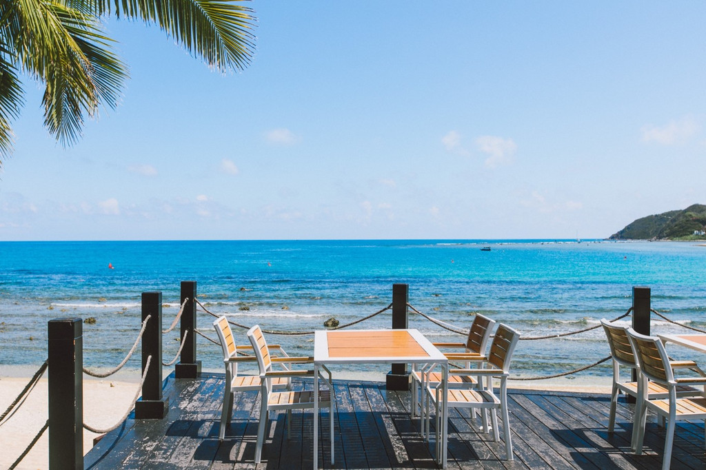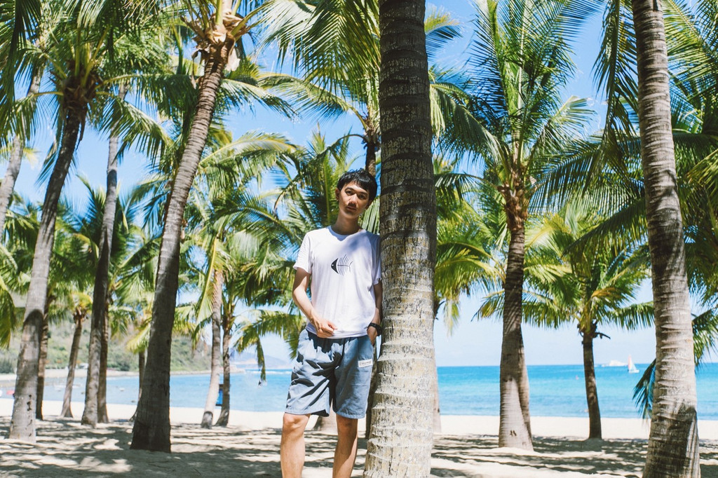 我们今天来到这边是中午12:00,天气特别热,所以不敢有过多的逗留,但是12点的海岸线特别的蓝,阳光照射在海面上,蔚蓝天空,椰子树的绿色和自己的白色衣服形成鲜明的对比。