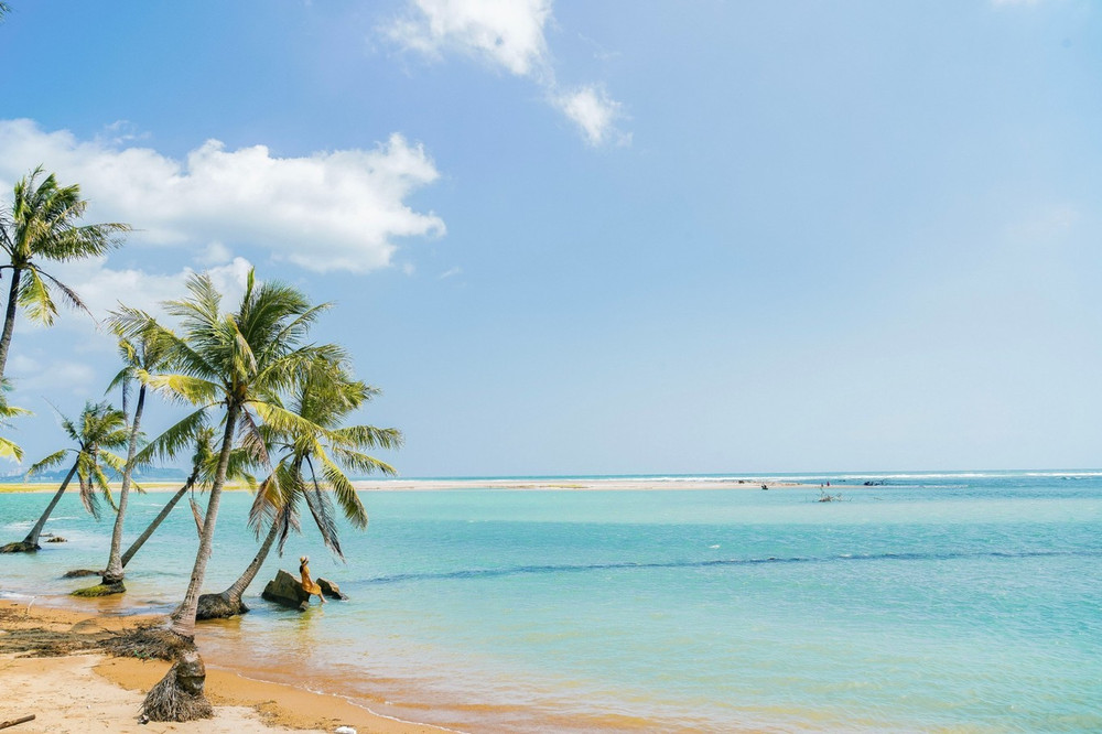 还有一些椰子树长在了水里,此刻,脱掉鞋子,走到椰子树底下的水里,感受一下树根的脉络吧。在这里戏水、玩沙,或者什么都不做,就静静地眺望着远方,心情真的超级好。