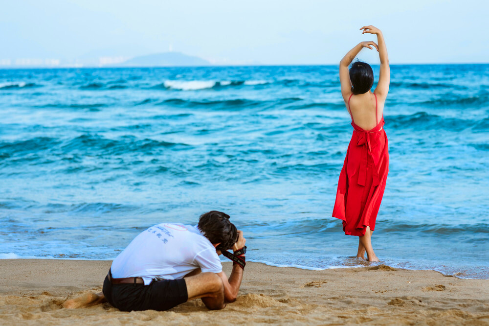 三亚 的这个拍摄点其实很久之前他就跟我提过,但一直不知道具体的方位。婚纱拍摄基地在大 东海 是有两个,一个就是位于我入住的酒店内,还有一个是新开的,但网上查了之后,发现酒店内的那个已经被关闭,而且因为是部队的区域,所以不推荐前往。于是我们去了新开的一个小 东海 婚纱摄影基地。