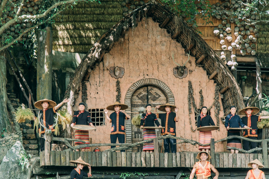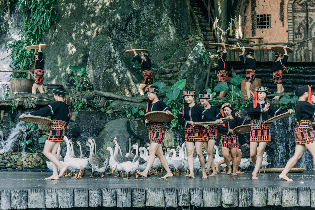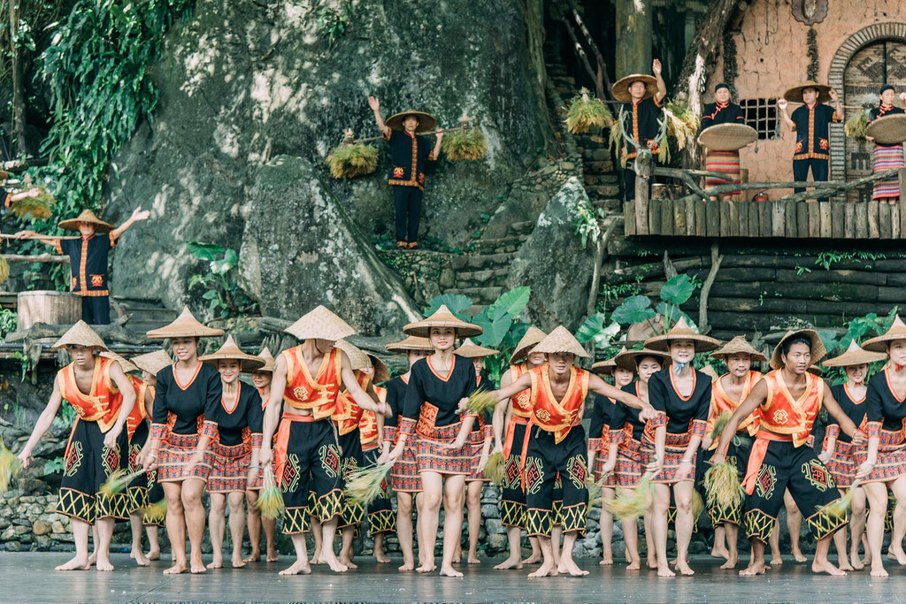 该景区自成立以来,一直致力于挖掘、保护、传承和弘扬 海南原住民传统文化。有幸观看了《槟榔古韵》实景演出,不仅还原了黎族人民的生活场景,还展示了海南的一些非物质文化,黎族八音、纺染织绣、打柴舞、黎族妇女的文身绣面等等。因为毅力、忍耐、决心再加上一点点技巧,文明的火种由此诞生。