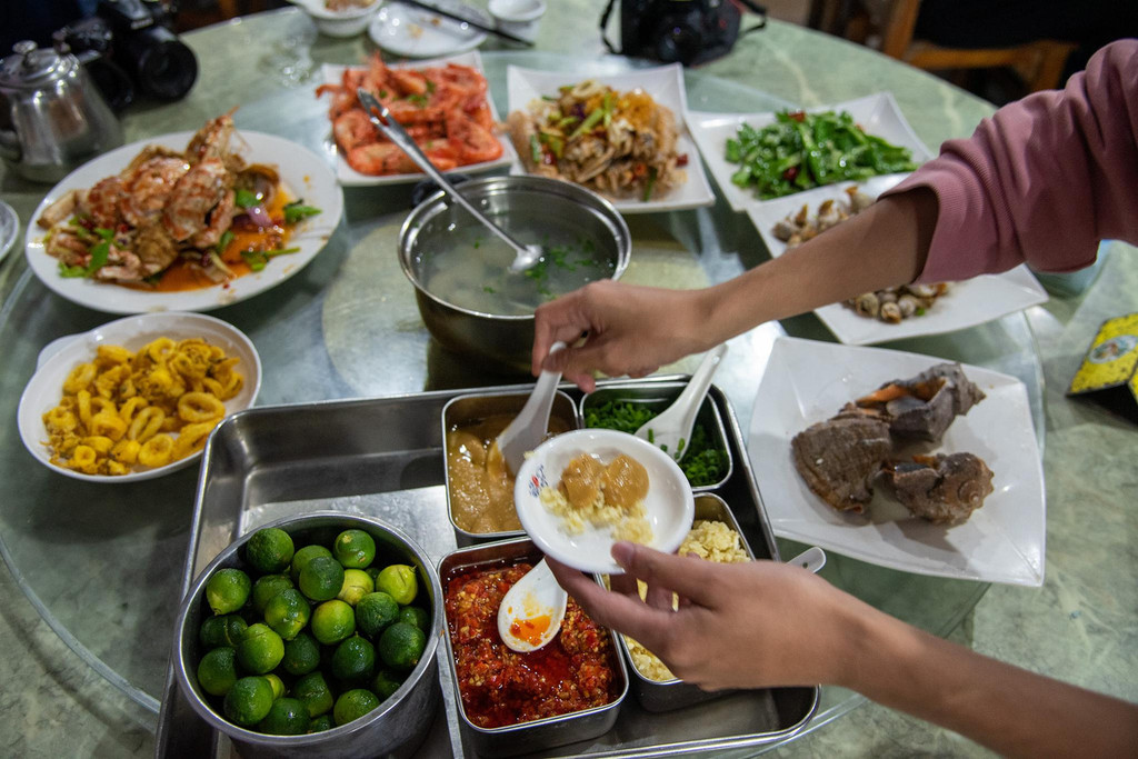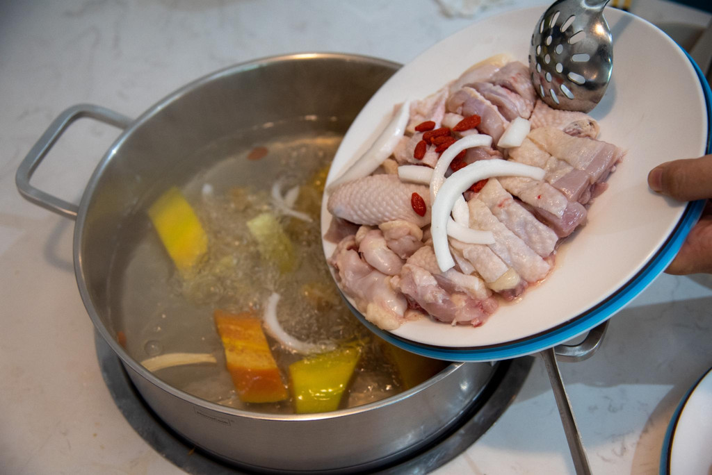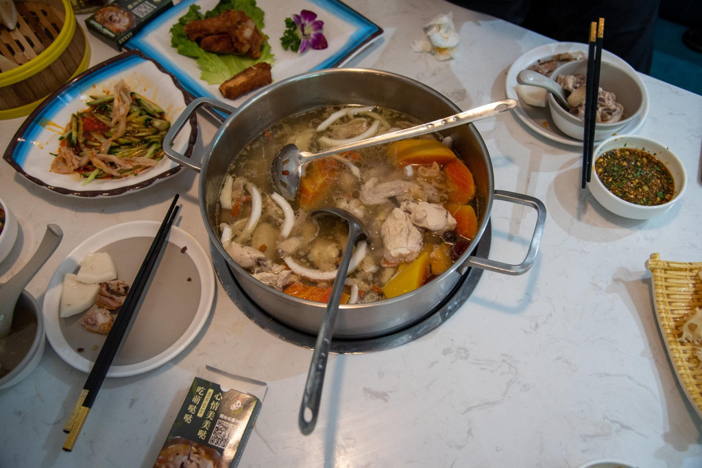 吃之前必须先喝一碗鲜美的鸡汤开胃,才算正式开启这一餐。鸡肉极为嫩滑,一点儿也不柴,吃完之后还可以煮些其他爱吃的配菜、例如虾滑、香芋、墨鱼仔和蔬菜之类的。