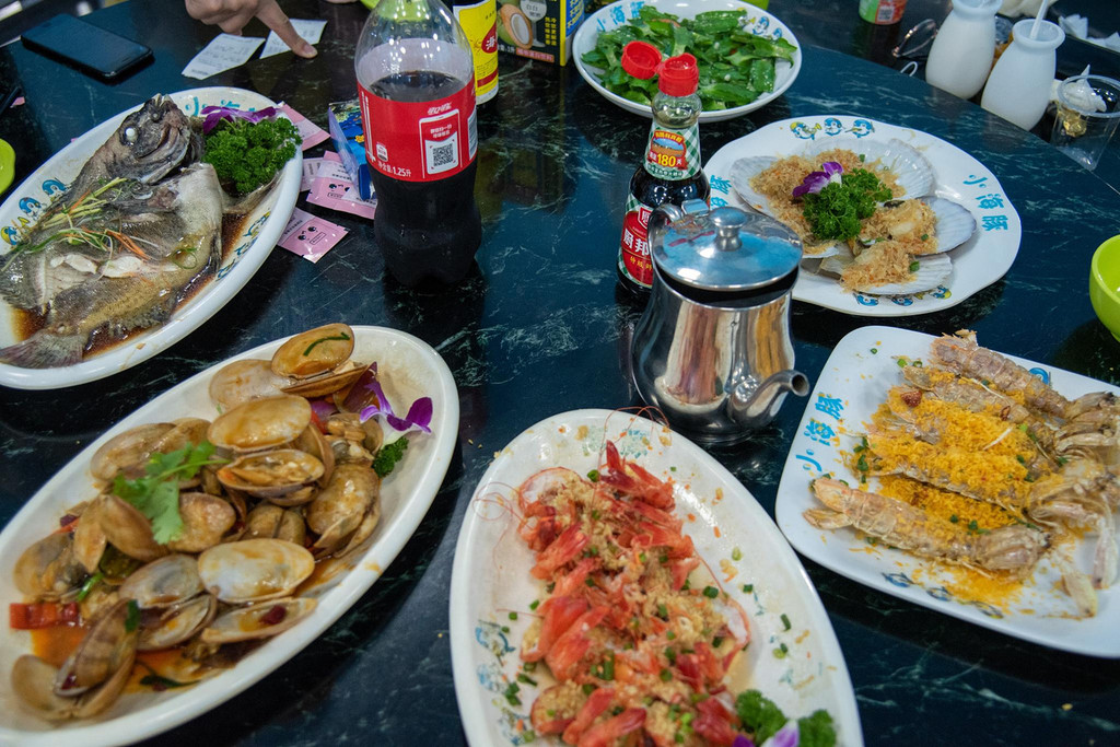 如果不是自家游,哪能因缘际会登上疍家渔排吃晚饭?好客的主人瞧我一个人拿着相机到处拍,热情邀请我和他们一起吃饭,精心准备了一大桌海鲜大餐,还拿出了自家酿制的海马酒,边喝酒边与主人家聊天,问他们的生活琐事,相谈甚欢,以至于在离别时,胸中竟涌起一股浓浓的不舍之情。