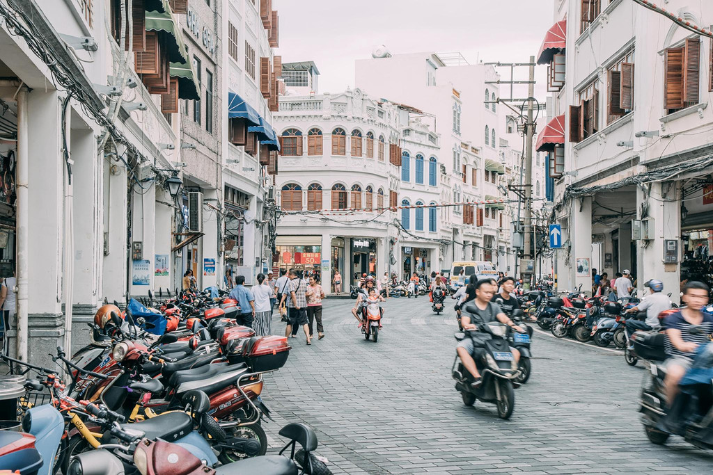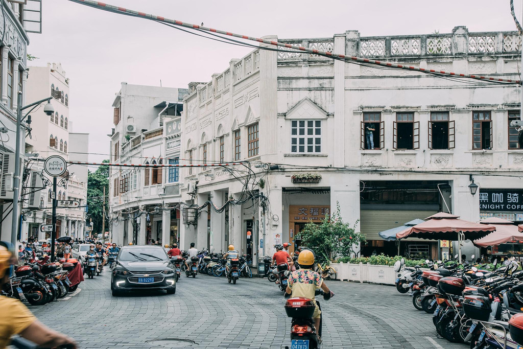 海口的骑楼老街就是这样一个地方,骑楼建筑虽然在南方城市中并不少见,但当地的骑楼自有一番与别处不同的韵味在。整体偏南洋建筑风格,细节处以传统的东方山水花鸟形象作点缀,经过数百年的海风侵蚀、暴雨冲刷,墙体已然斑驳,但不难窥见其昔日的精致与繁华。