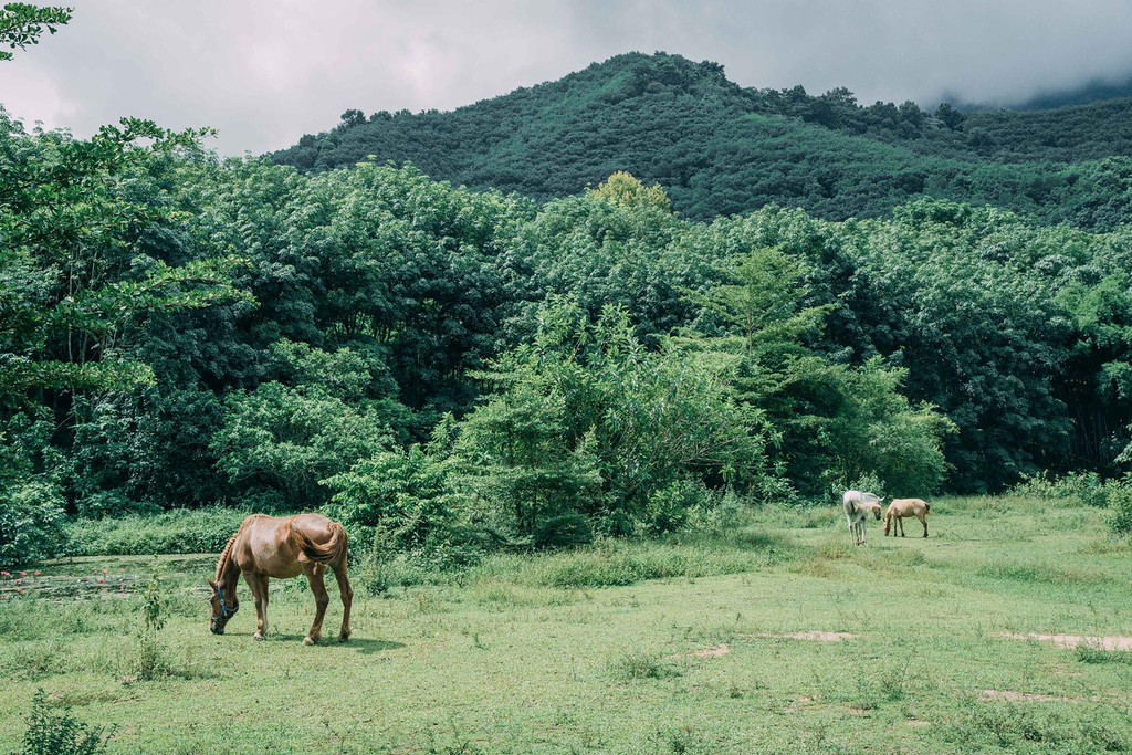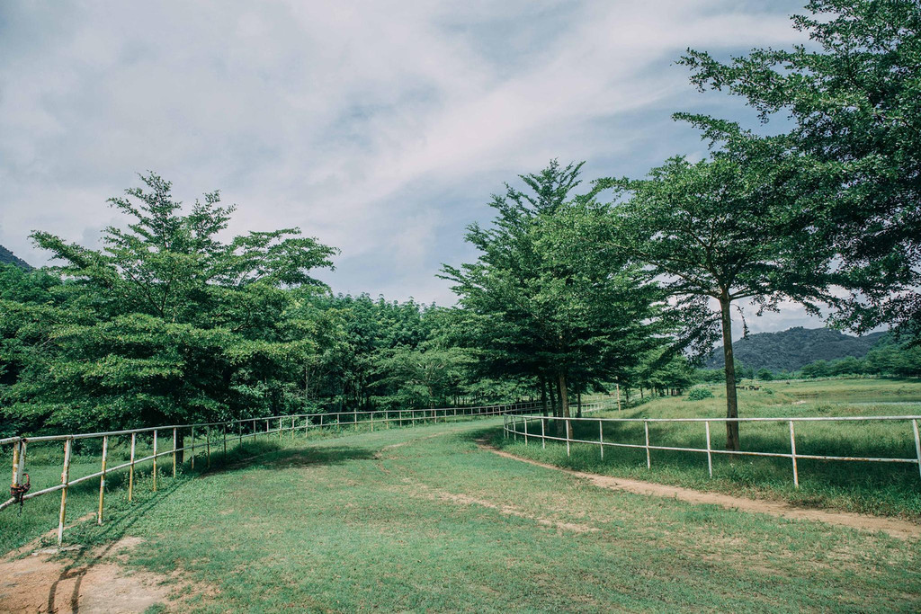 在欣赏完瀑布的壮观景象之后,来到罗帅雨林休闲山庄,它紧邻黎村罗帅仙女溪,空气清新,每立方分米负氧离子高达万个,是个名副其实的热带天然大氧吧。在罗帅雨林山庄天涯驿站休整一晚,第二天来到那 吉马 术俱乐部体验,蓝天、绿树、青草、湖水和骏马,恍惚间觉得自己摇身一变,成为古时武功超群,正气凛然的游侠,就差一把配剑。