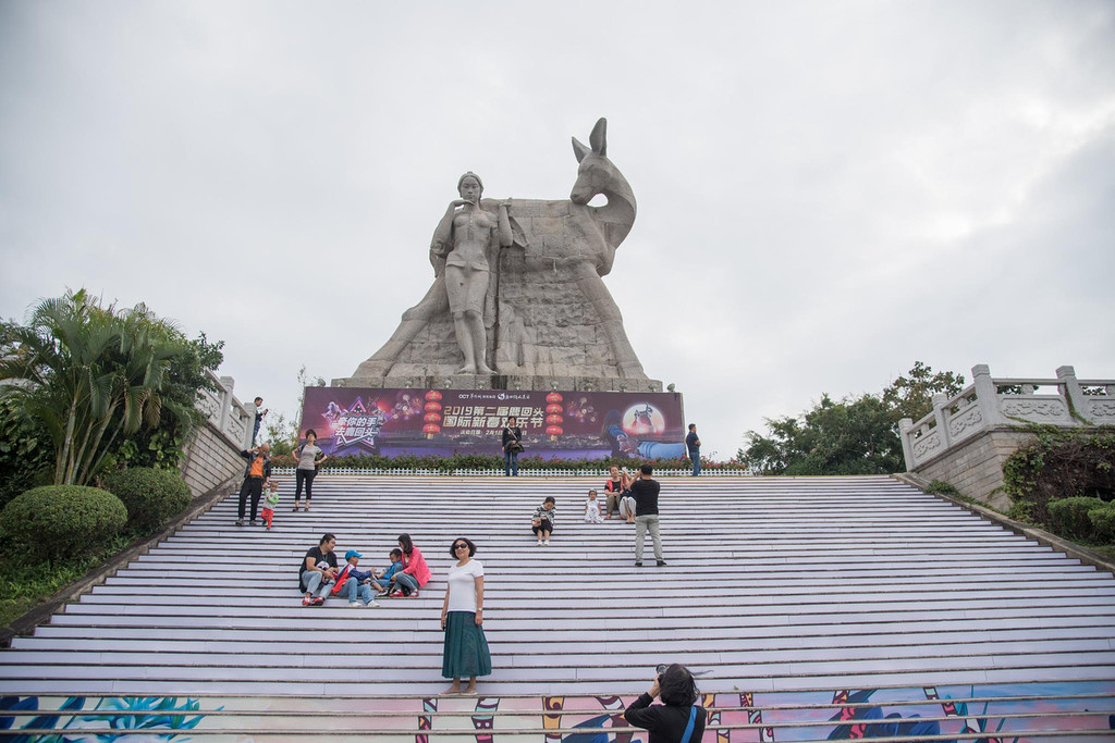 鹿回头是登高望海和观看日出日落的制高点,也是俯瞰三亚市全景的唯一佳处。鹿回头山顶除了可以俯瞰到整个三亚湾、三亚市,再往东看,还可以俯瞰到整个大东海。老天爷抬爱,虽然我们到山顶的时候依旧有云层,但太阳探了出来,海水美得很销魂,不由地感叹岁月静好。