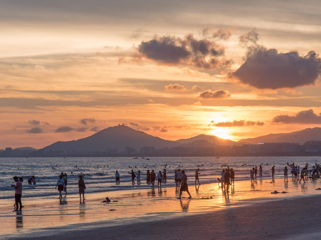 吹着微凉的海风,看着起起伏伏的海面,还有嬉戏玩耍的人群,时间就这样悄无声息地被蔚蓝的大海带去了很远很远的地方。