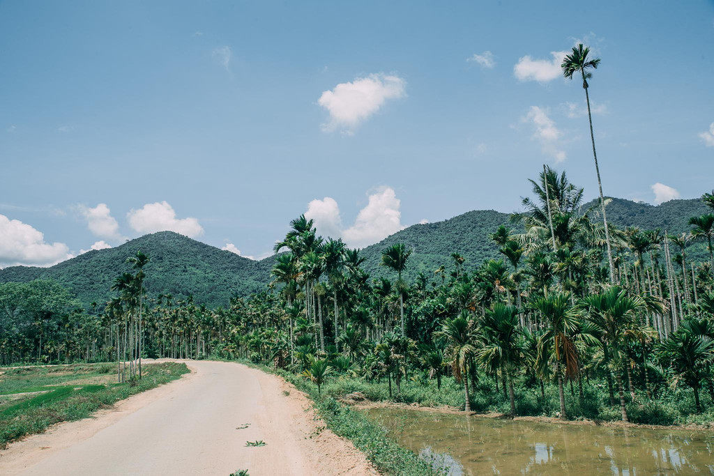 在槟榔谷还吃到了最特别最原汁原味的黎家小吃,黄姜饭、竹筒饭、山栏酒、糯米糕。遇到热情的黎家阿婆,很开心地跟我讲述和许多当地的琐碎小事,就着傍晚不知谁家飘出的烟火气浓重的菜香,丝丝钻进脑子里。扛着相机四处拍照的我反而好像变成了一个格格不入的闯入者,那股钻心的香味,仿佛就是勾人的歌,告诉你,要学会放下,要学会生活。