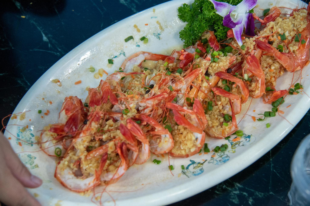 我点了必吃的香辣蟹、椒盐皮皮虾、蒜蓉开边蒸大龙虾以及海南椰子饭,点餐之后店员就到旁边的海鲜卖场直接采购,可以直接看到海鲜采购的过程,新鲜得让人放心。