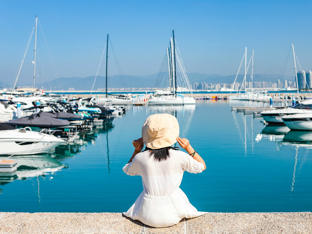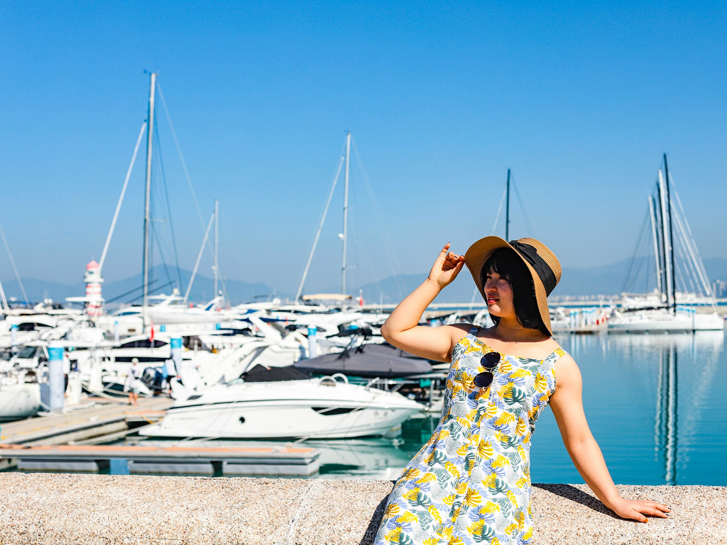 半山半岛是一个富人区,也是三亚新开发的地产项目。我们来到这里,发现这边很多场所其实还在开发中,但已然成为了婚纱摄影基地和网红拍照打卡地了,所以我们也不能错过啊,但这边拍婚纱照的太多了,一不小心就要被远处的摄影师喊话“让让”,所以我们也只好蹭几张照片,就去马路对面的游艇帆船码头。