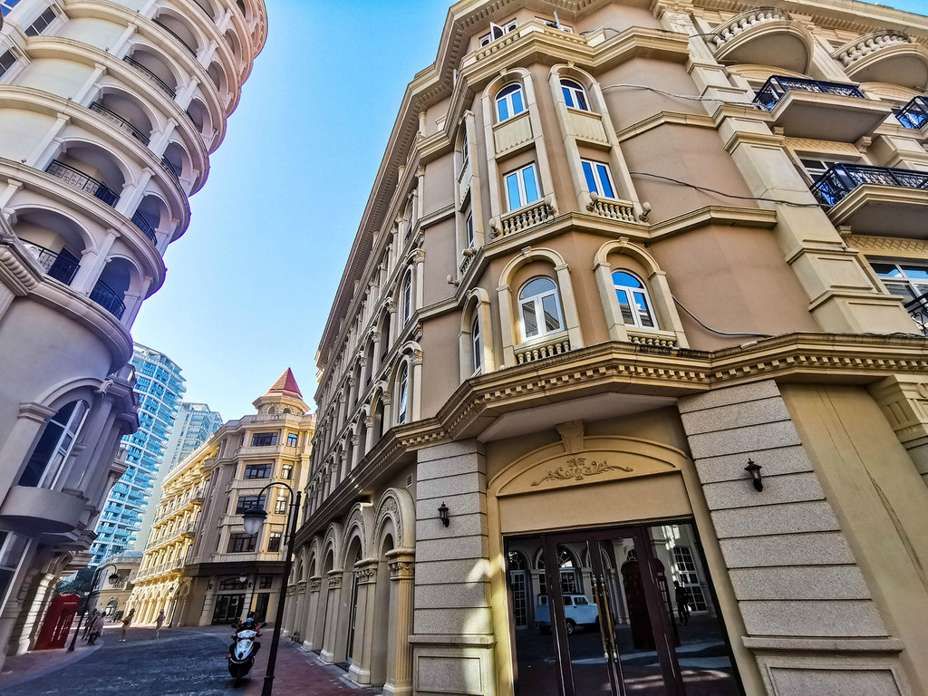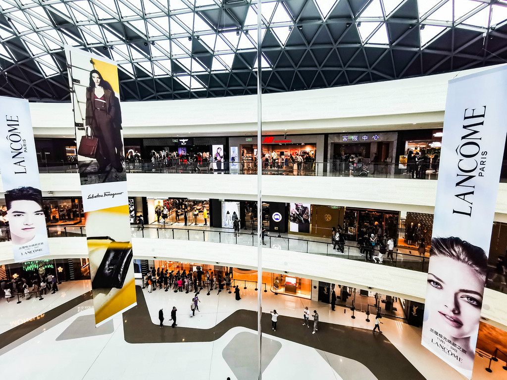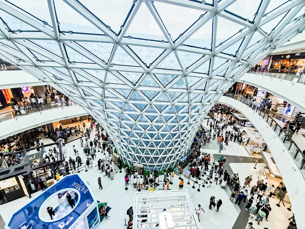 免税城分为A区和B区,在这两个区域的3楼有一个廊桥,可以将这两个区域连接起来。