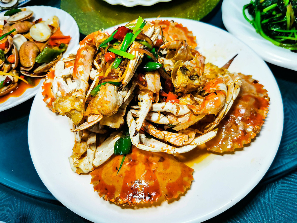 皮皮虾和香辣蟹是每次必点的,因为爱。阿浪的皮皮虾每一只个头都有一个手掌那么大,真的吃起来超过瘾。而海蟹个头也不小,经过辣炒以后,感觉每一粒盐每一颗辣椒的味道都融进了海鲜里,朋友吃完了说要吮指才过瘾哈哈~