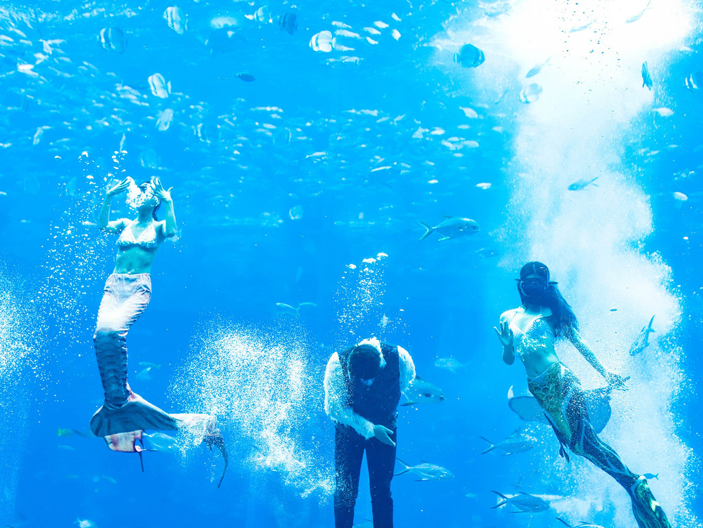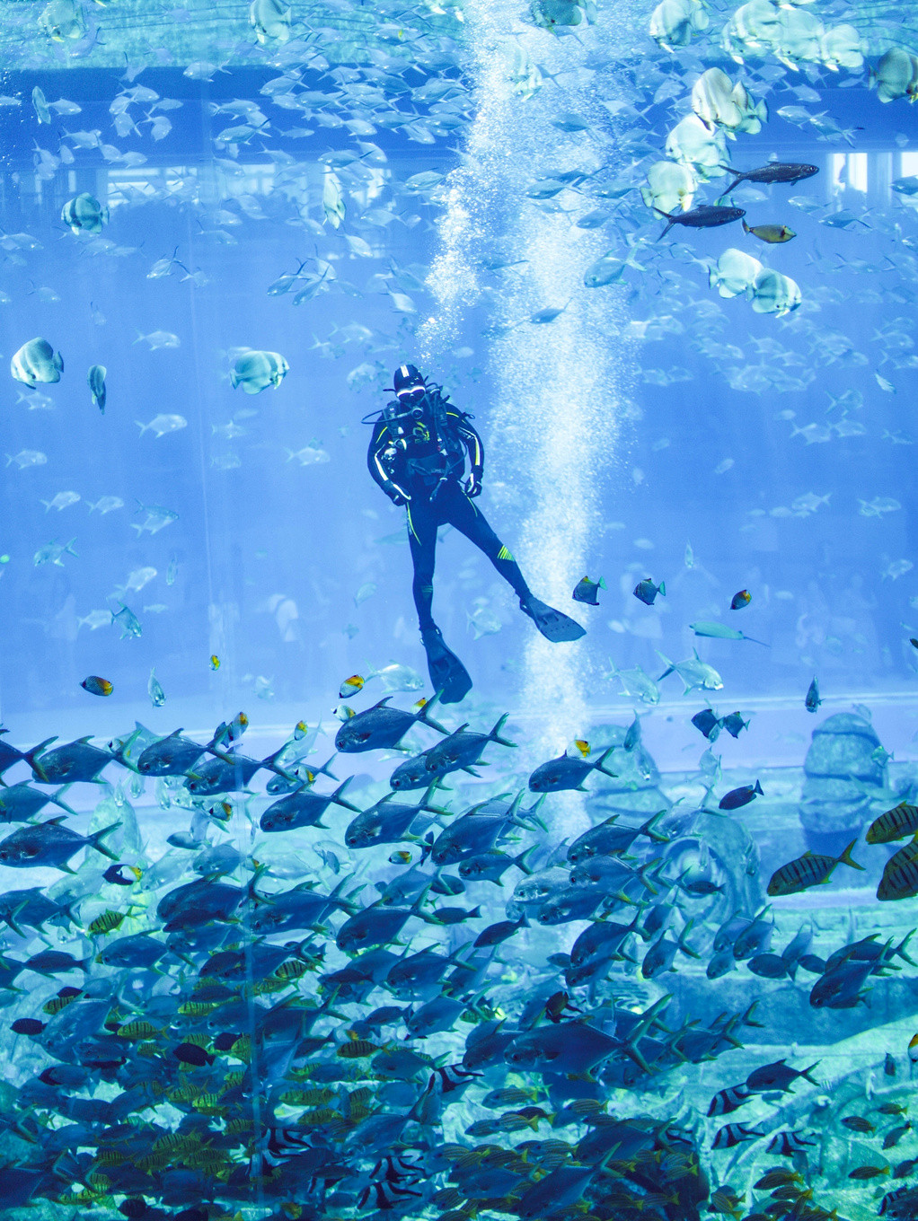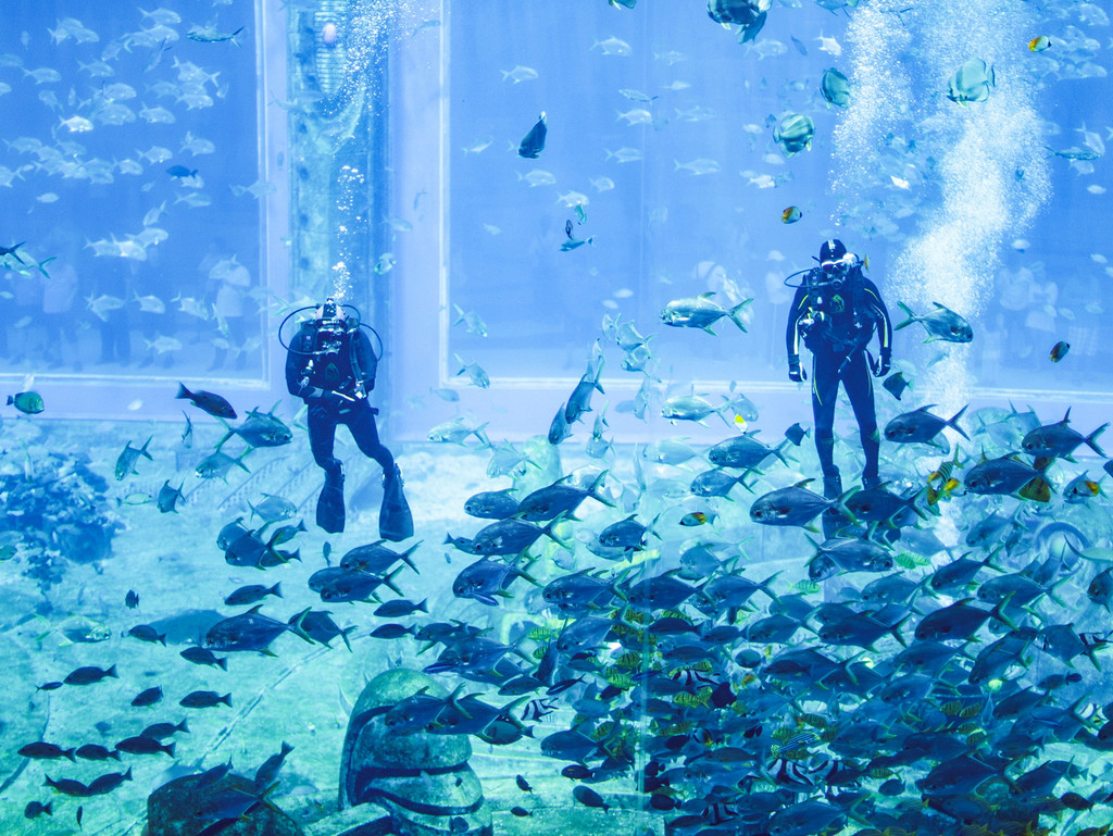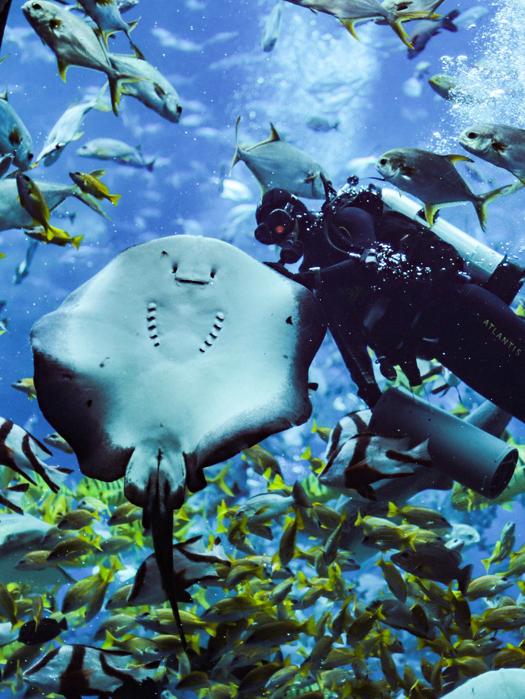亚特兰蒂斯水族馆内也有潜水项目的体验,潜水项目体验名称叫极限浮现-大使环礁湖,可以在官网上事先了解下和蜈支洲岛等潜水基地潜水的区别,考虑要不要参加,是自费哒。