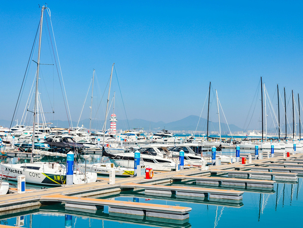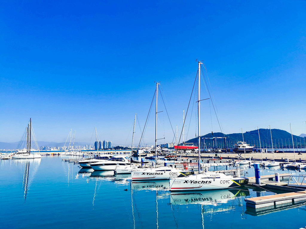 另一边的游艇帆船码头真的很好看。一艘艘游艇一艘艘帆船,集中停靠在岸边,配合三亚的蓝天和大海,这画面太完美了,也有很多旅拍在这边拍照,哎,三亚真是太火爆了,我们这些“闲杂人等”也只好简单的自嗨啦。