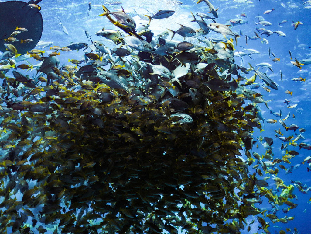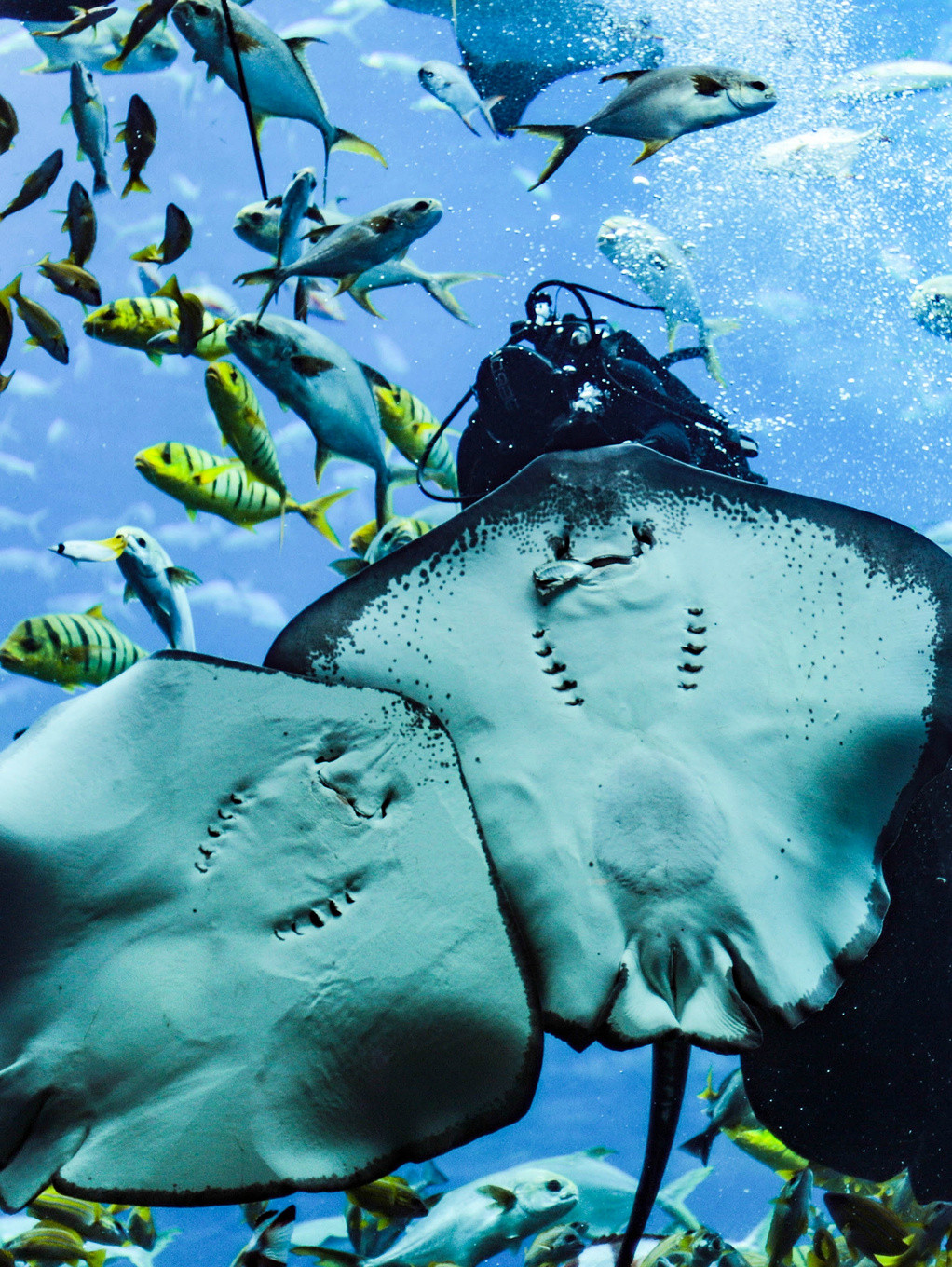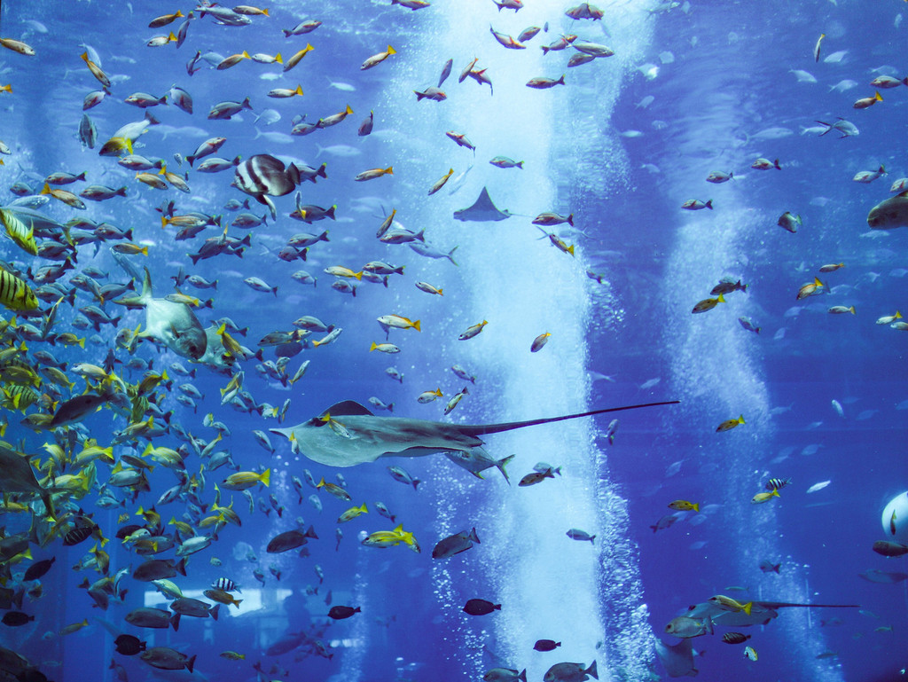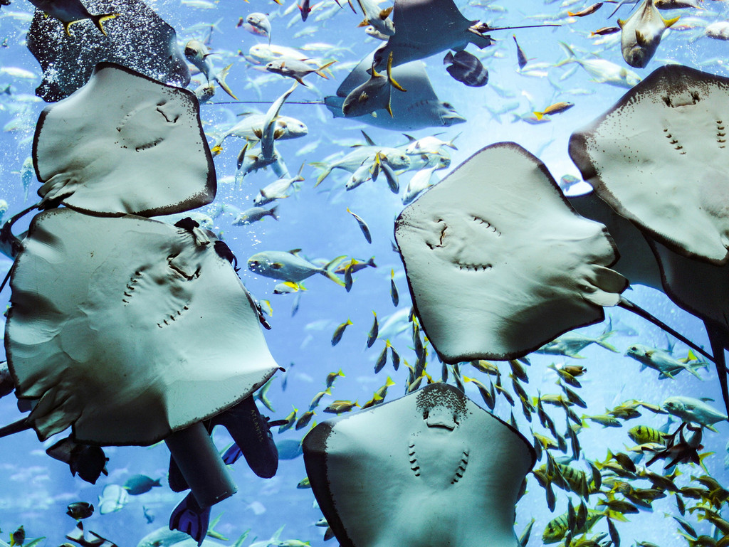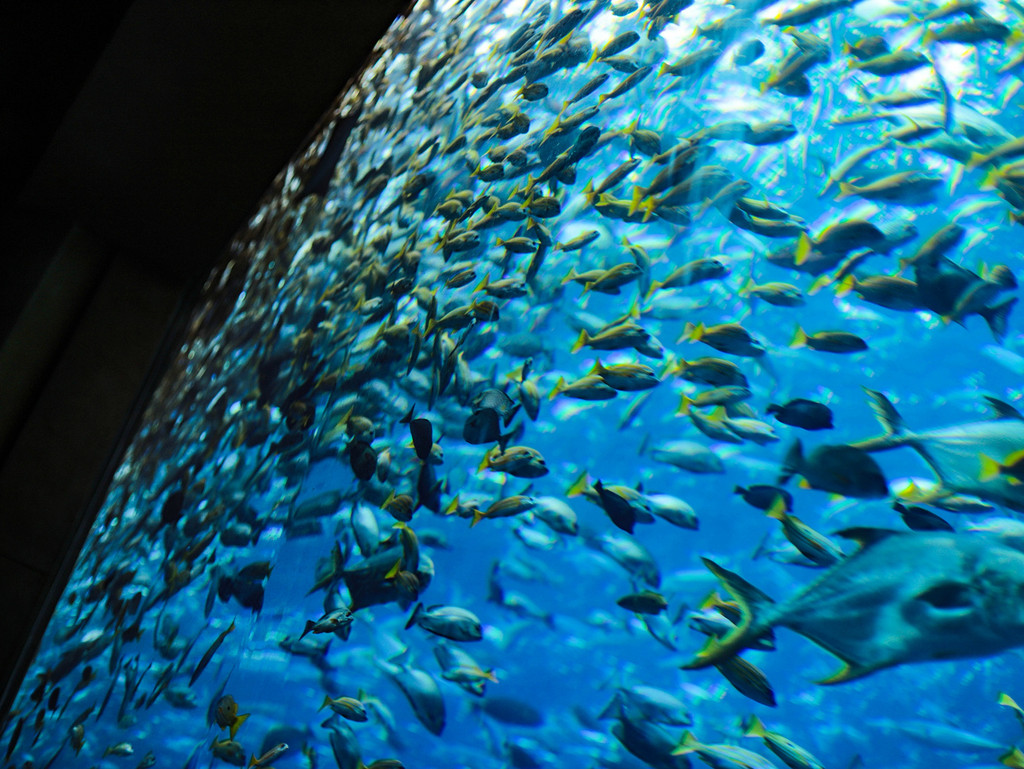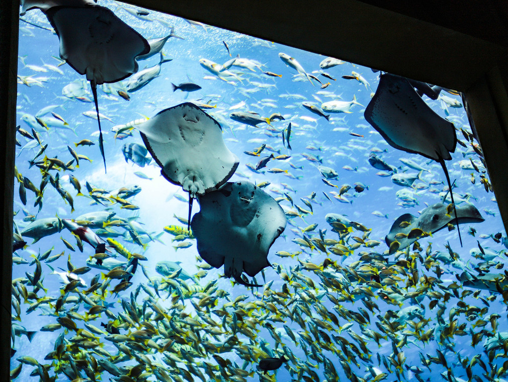 先给大家看几个数字吧,在这个水族馆里,有一个16.5米长的巨缸,里面有13500吨海水,8.6万只海底生物在这里安家,而且整个水族馆里,总共有280多种海洋生物,很多种都是我们在其它城市水族馆看不到的。