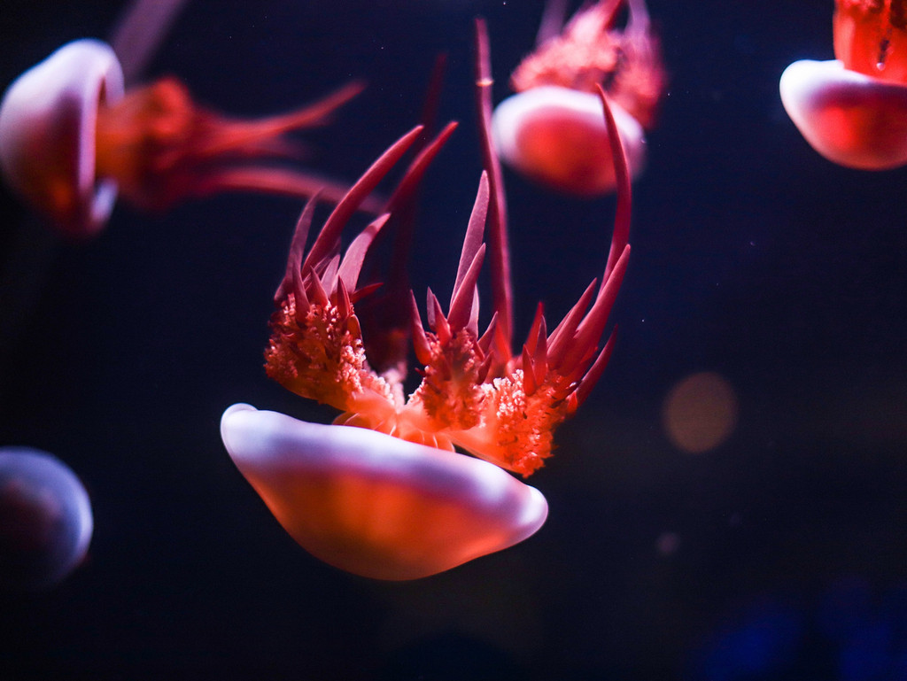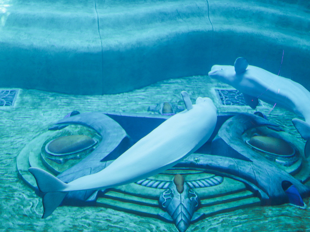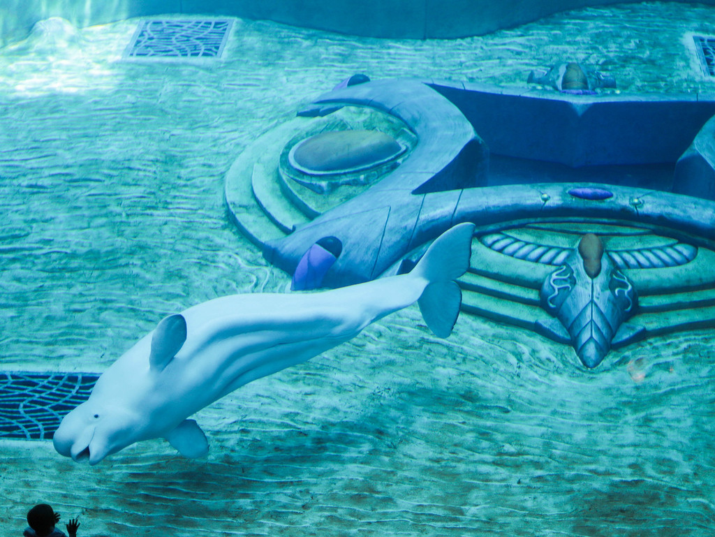 来到这里,真好像是在亚特兰蒂斯的神话里,整个水族馆的装修都是在复原这个神话,各种海洋生物在各自的世界里幸福的生活着。两头白鲸翩翩起舞,各种水母憨态可掬,反正你见过的、没见过的海洋生物,这里真的是都可以一键打开,大开眼界。