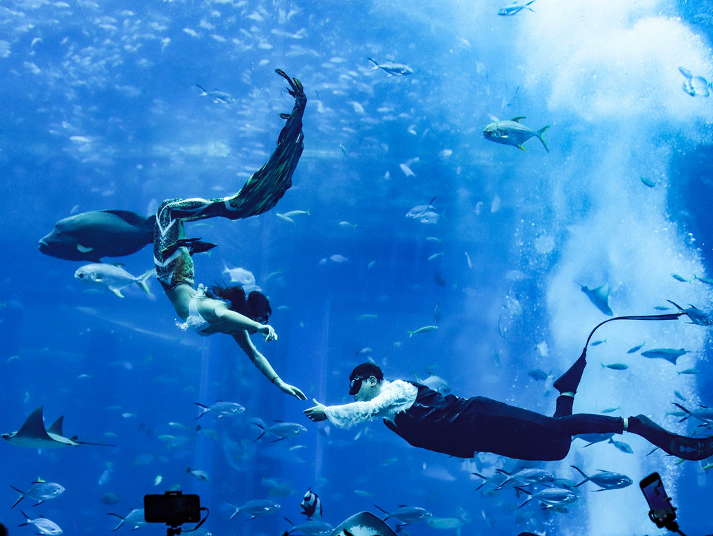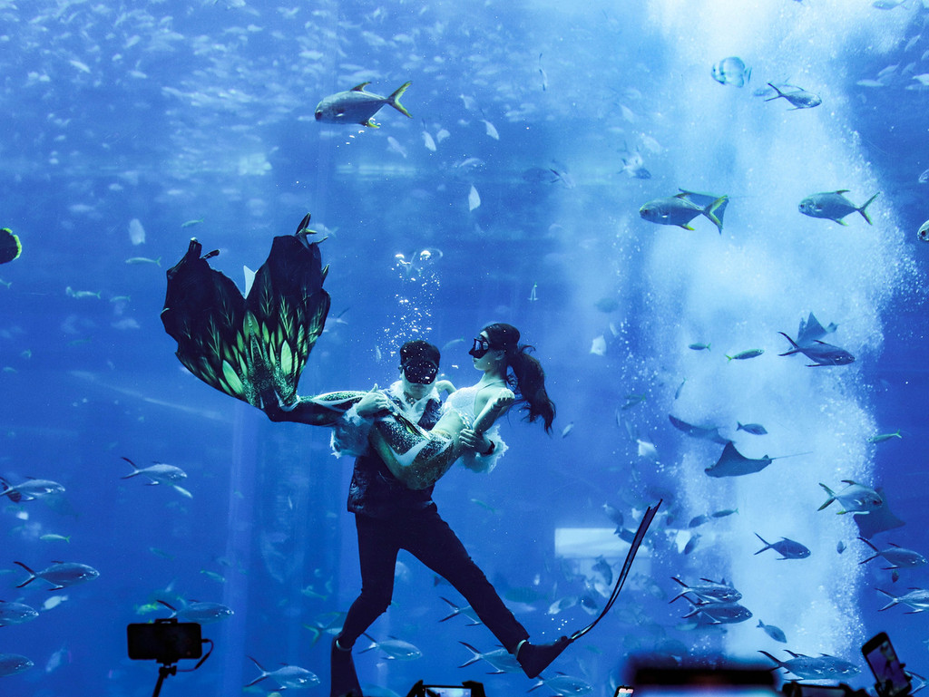 美人鱼表演超级唯美,美人鱼公主和王子的浪漫呈现在我们眼前,超浪漫。