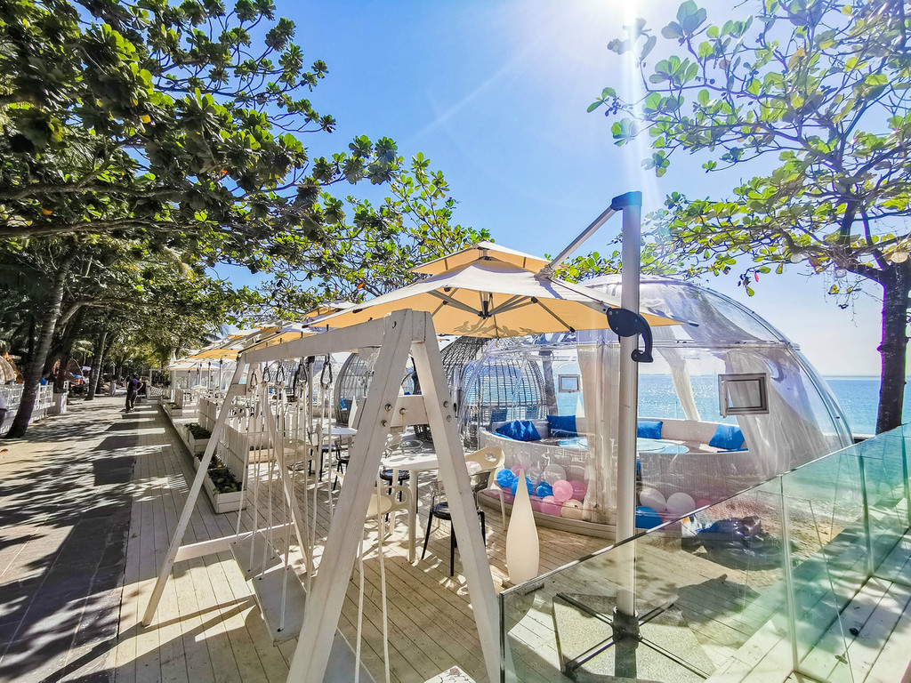 来到小海豚,天还很明亮,在阳光下,这栋海蓝色的建筑格外鲜艳,外部的装饰很有爱,也很卡哇伊,一下就激发了我们的少女心,不愧是三亚的网红餐厅,在这样的环境里吃东西,不枉我们大老远跑过来。