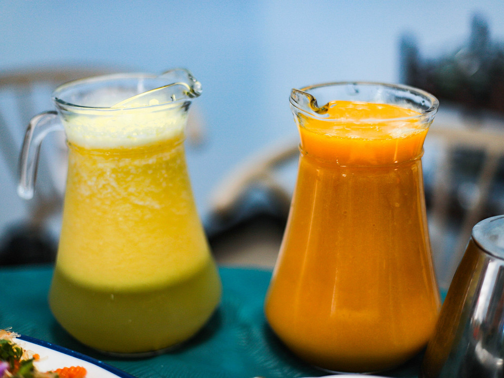 老板好热情,看我们点这么多吃的狼吞虎咽,还不停担心我们不够吃,还给我们准备了芒果汁和菠萝汁,全部都是鲜榨的,没有掺水,良心卖家呀。