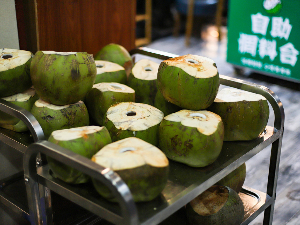服务员帮我们把三个椰子汁及配料倒入锅中,开锅了以后香嫩的鸡肉让我们好满足,尤其加入了花胶的椰子鸡汤,一口下肚,热热的鸡汤从口腔顺着食道流入肠胃,感觉一天的疲劳在这一瞬间都化解了,一人两碗鸡汤下肚,服务员加汤~